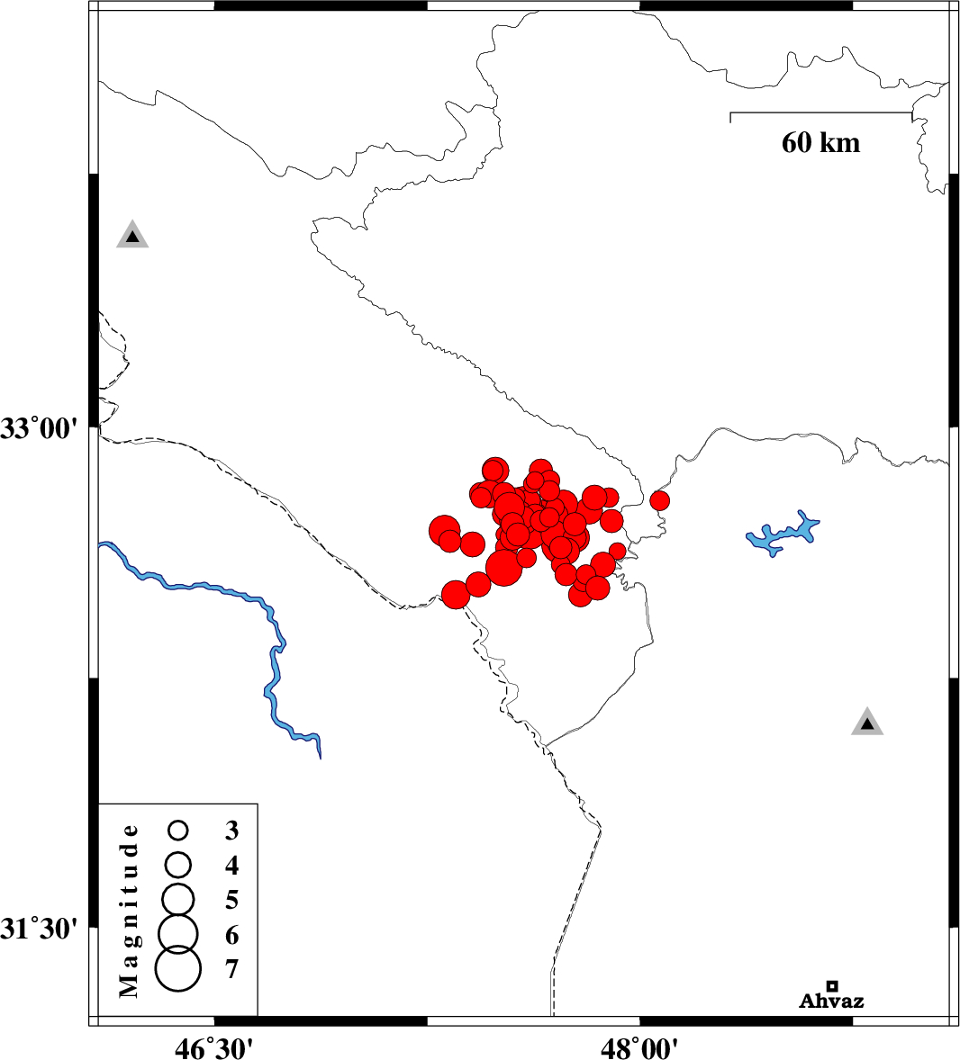 2014/08/18 05:25:51.3 09:55:51.3 32.6947.6114 ML:5.8 Ilam Province, 33 km East of Dehloran