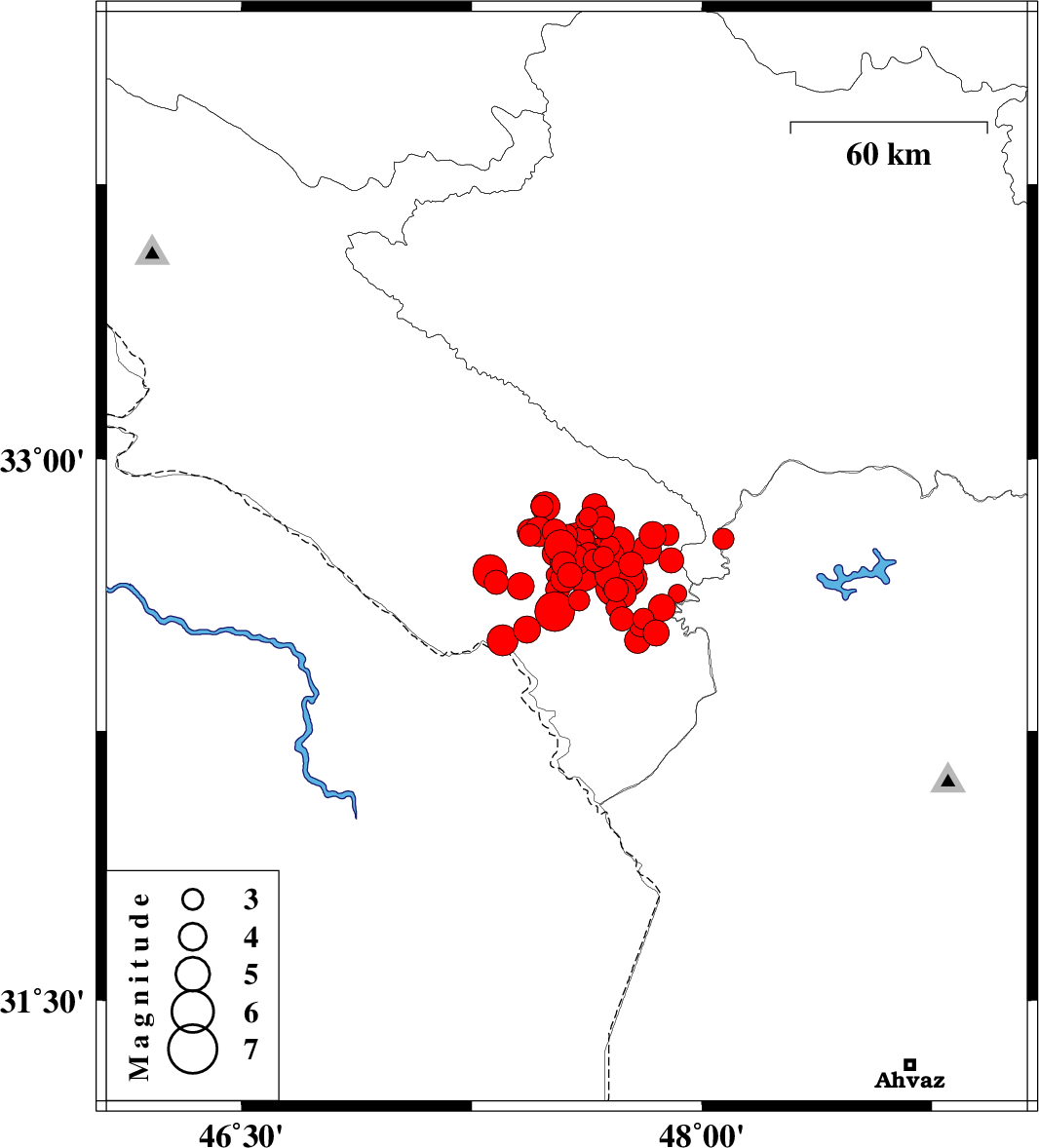 2014/08/18 05:25:51.3 09:55:51.3 32.6947.6114 ML:5.8 Ilam Province, 33 km East of Dehloran