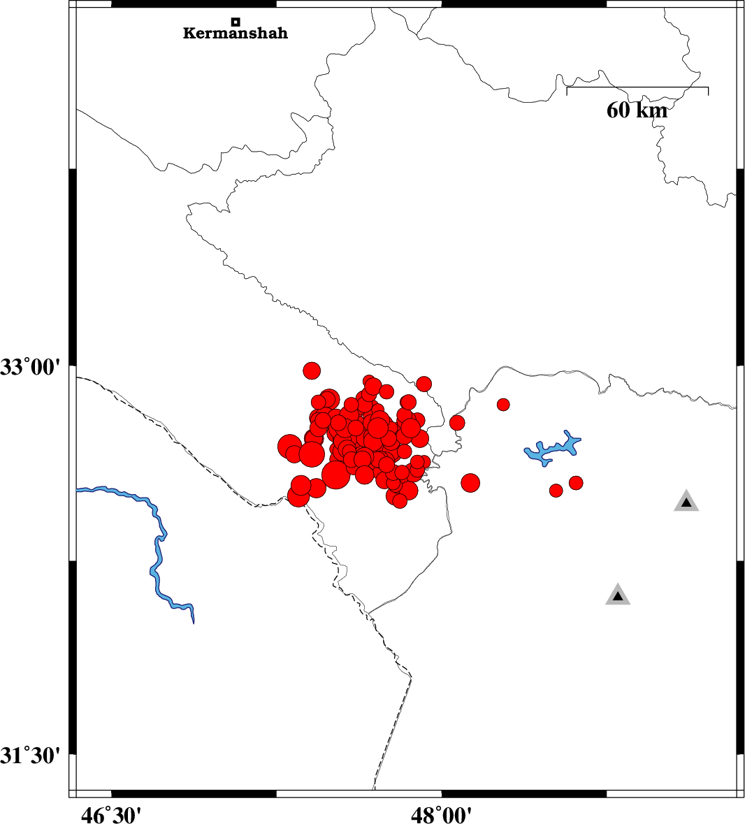 2014/08/18 05:25:51.3 09:55:51.3 32.6947.6114 ML:5.8 Ilam Province, 33 km East of Dehloran