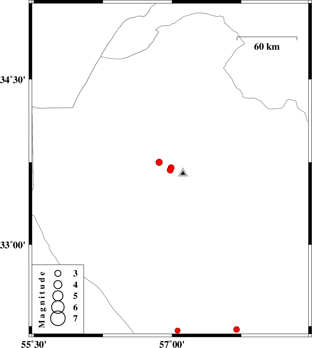 2014/08/20 | 16:02:09.8 | 20:32:09.8 | 33.75 | 56.86 | 14 | ML:3.2 | Yazd Province, 18 km North of Tabas | ||