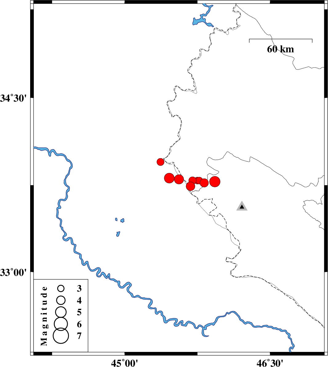 2014/08/24 23:06:04.1 03:36:04.1 33.7945.75 ML:3.5 Kermanshah Province, 44 km South-West of Gilan-E-Gharb