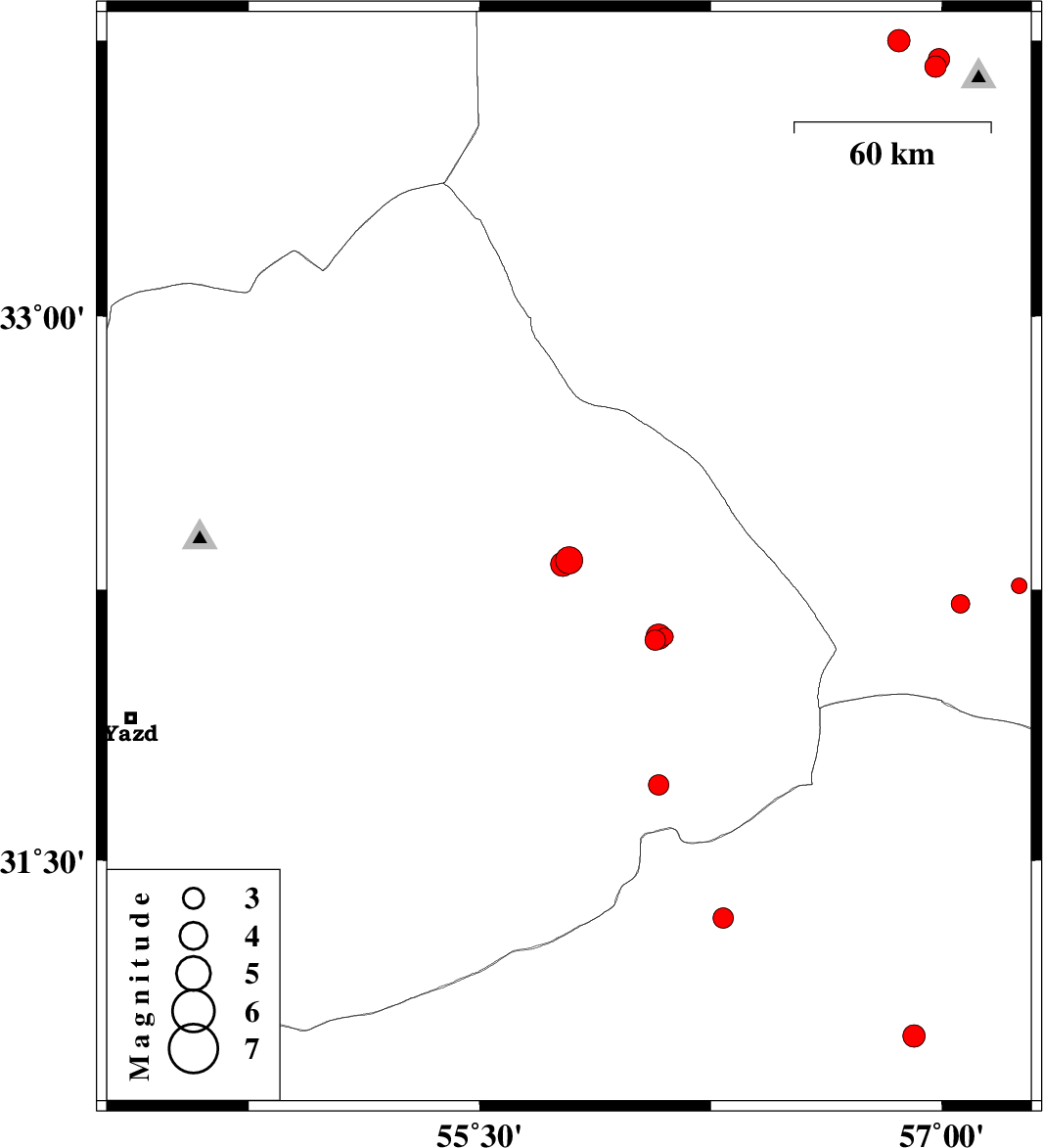2014/08/15 | 03:51:38.9 | 08:21:38.9 | 32.21 | 57.06 | 14 | ML:2.7 | Yazd Province, 108 km North-East of Ravar |