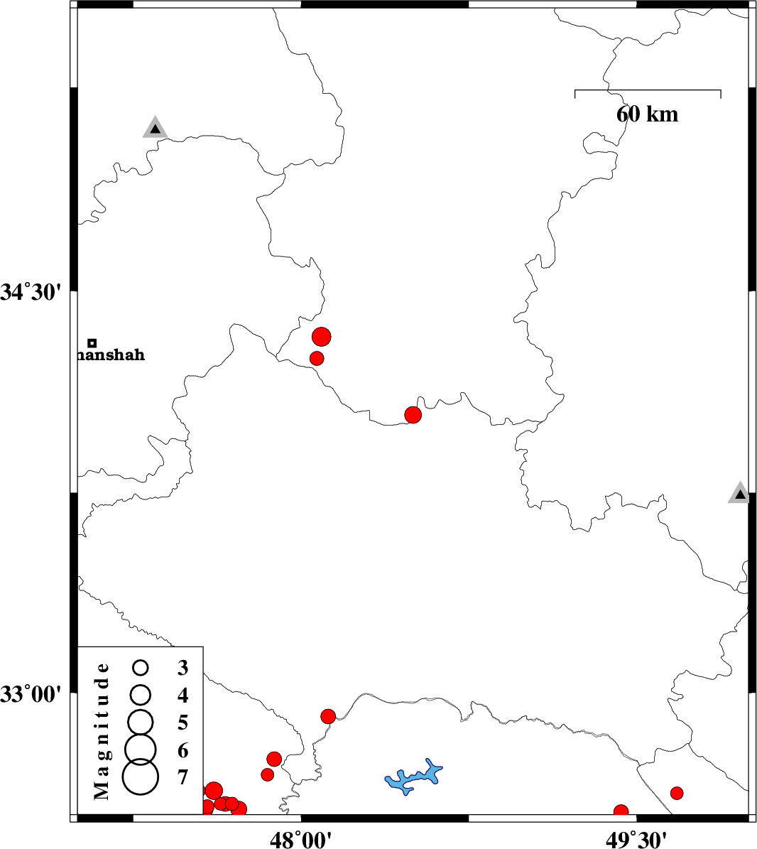 2014/09/09 | 08:41:46.9 | 13:11:46.9 | 34.33 | 48.09 | 14 | ML:3.8 | Hamedan Province, 23 km South-East of Kangavar | ||