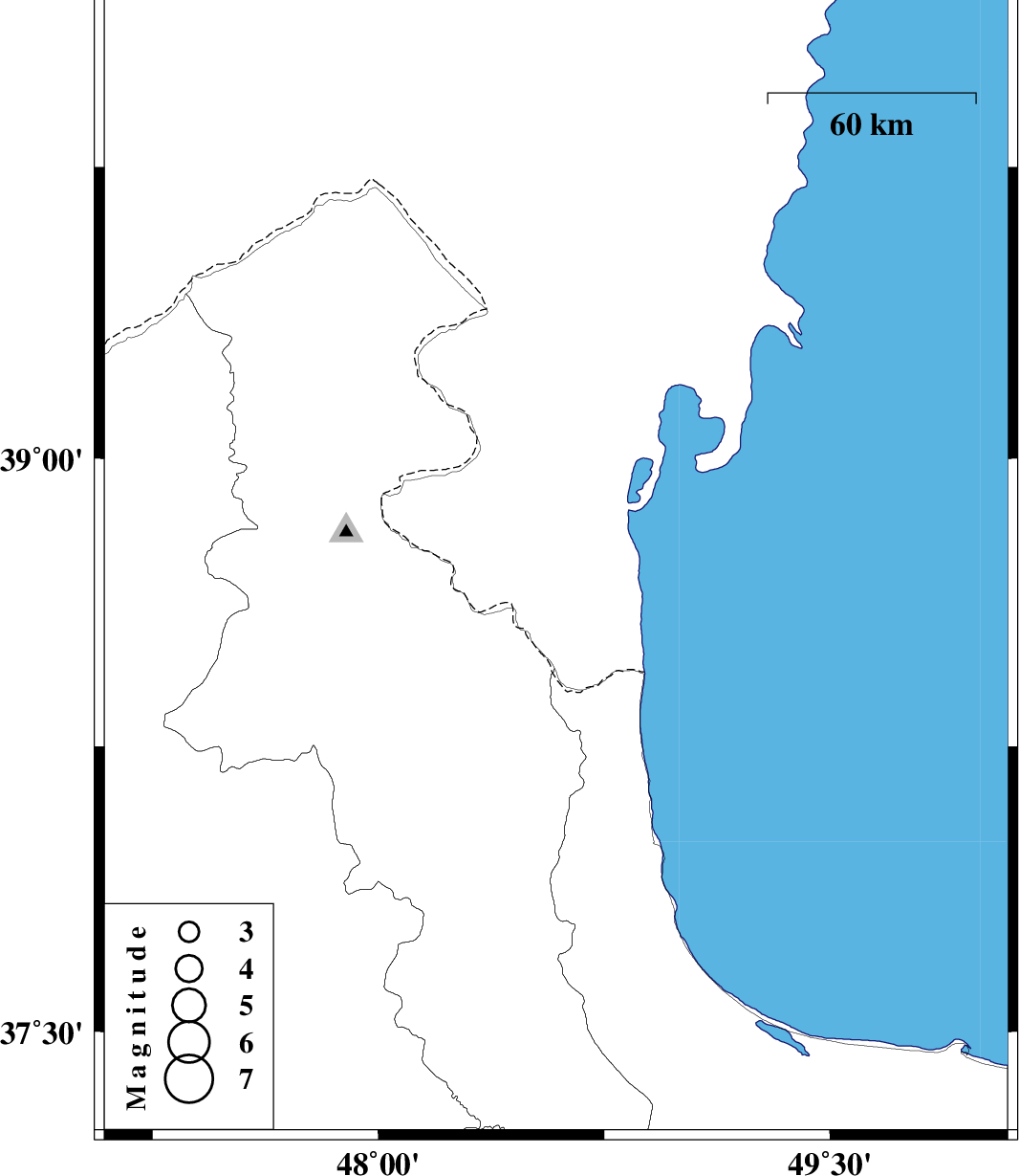 2014/09/18 | 22:29:11.9 | 02:59:11.9 | 38.74 | 48.59 | 34 | ML:4.4 | Azerbaijan, 35 km North-East of Namin |