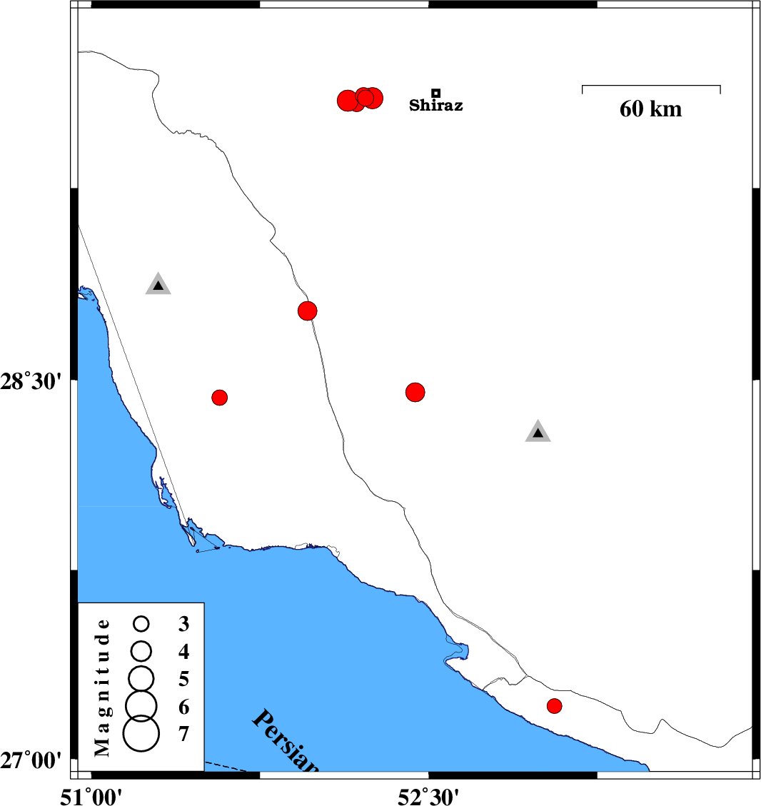 2014/08/27 | 09:09:31.2 | 13:39:31.2 | 29.58 | 52.18 | 18 | ML:3.2 | Fars Province, 34 km West of Shiraz | ||