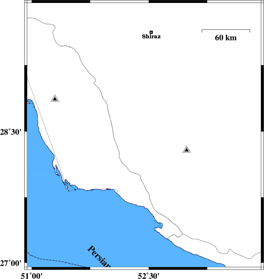 | 2014/09/05 | 13:24:55.8 | 17:54:55.8 | 29.61 | 52.21 | 6 | ML:3.2 | Fars Province, 31 km West of Shiraz | ||