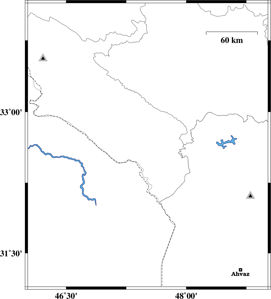 | 2014/09/24 | 13:39:10.2 | 17:09:10.2 | 32.45 | 47.2 | 18 | ML:3.4 | Iraq, 28 km South of Dehloran | ||
