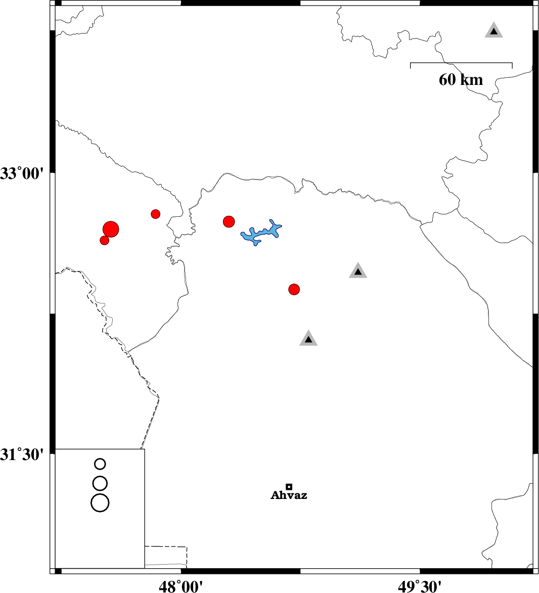| 2014/09/29 | 06:16:10.6 | 09:46:10.6 | 32.64 | 47.52 | 18 | ML:2.5 | Ilam Province, 25 km East of Dehloran | ||