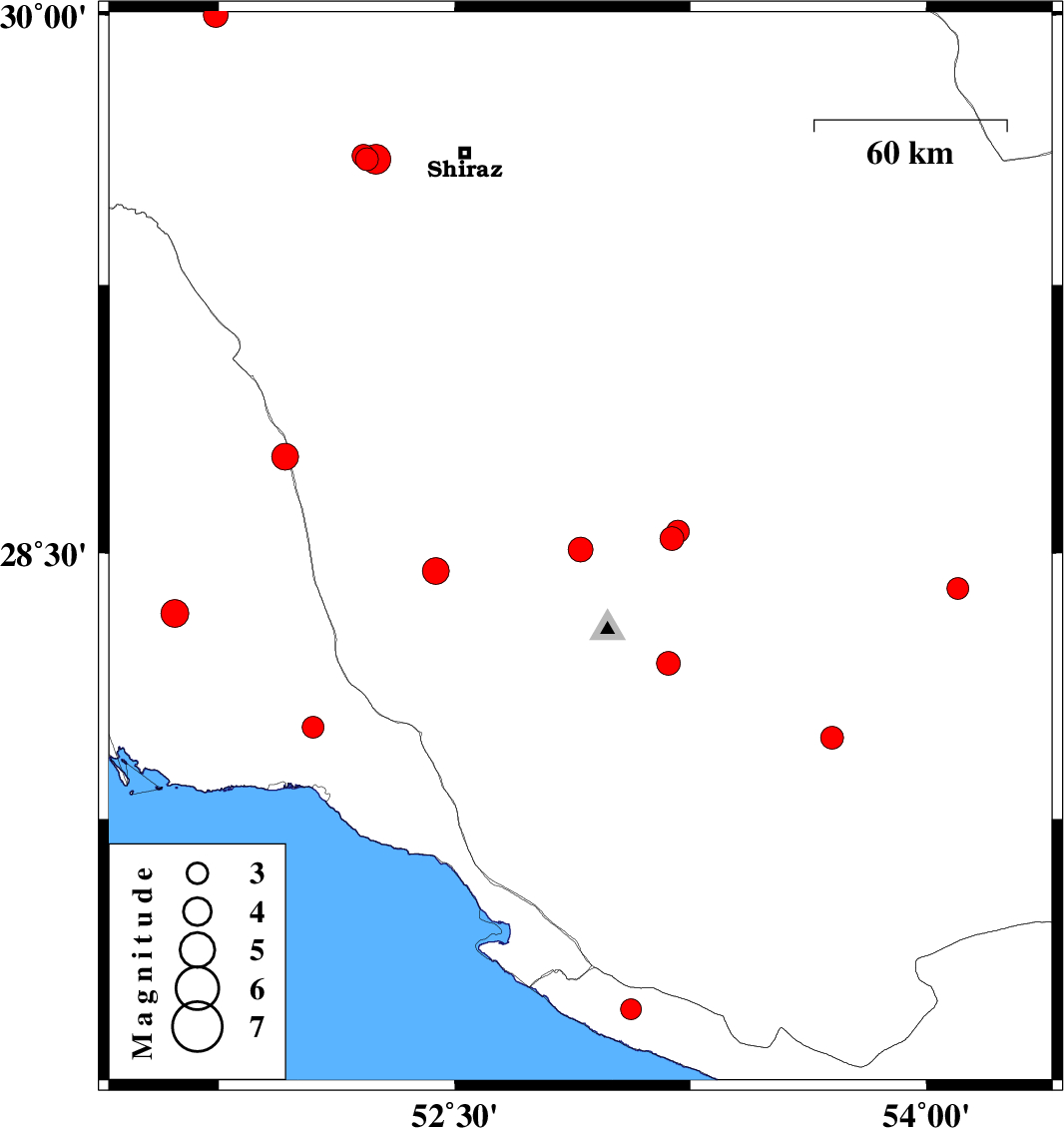 2014/10/04 | 02:26:12.2 | 05:56:12.2 | 28.51 | 52.9 | 6 | ML:3.5 | Fars Province, 14 km West of Qir va Karzin | ||