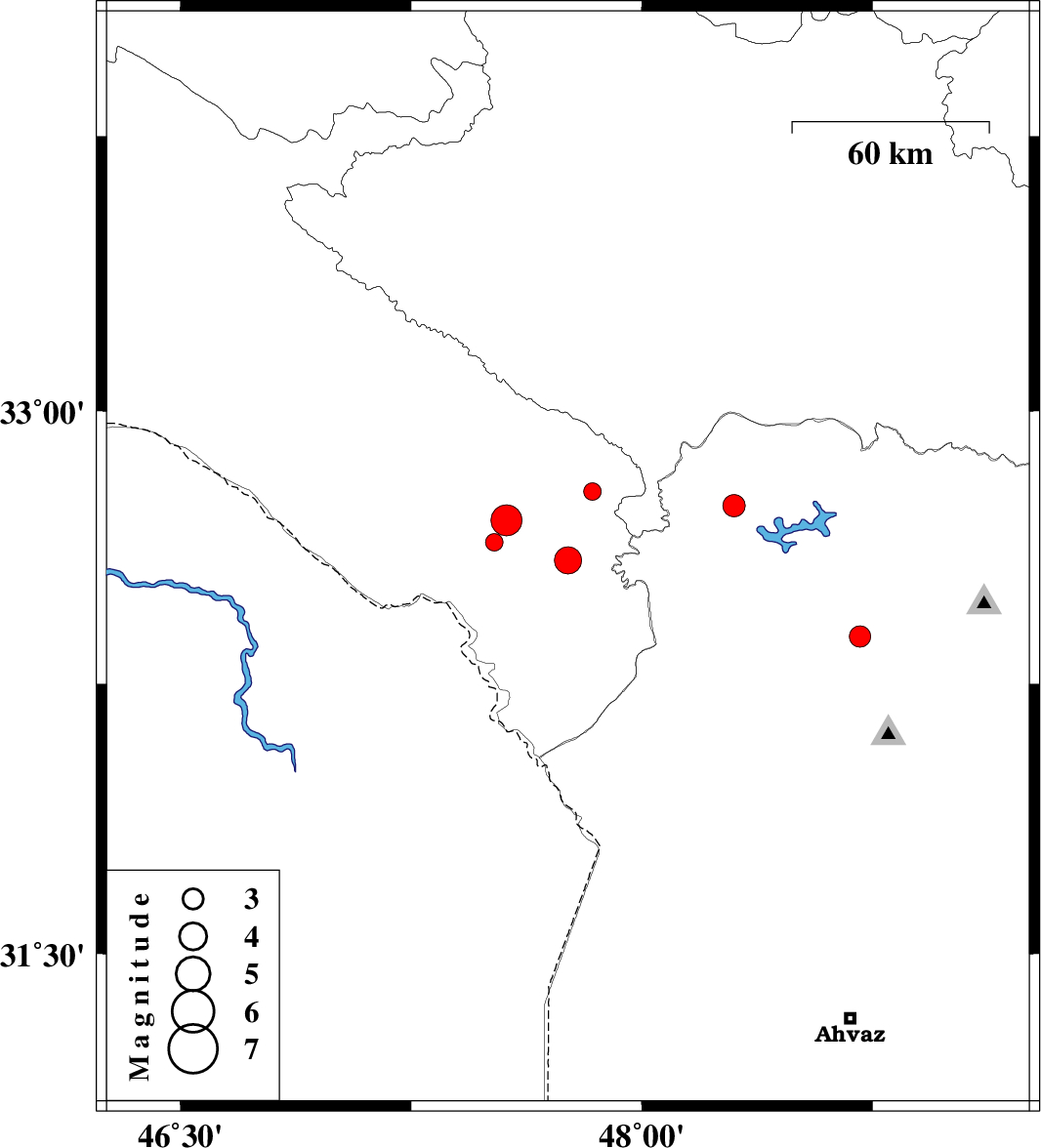 | 2014/10/03 | 02:27:09.2 | 05:57:09.2 | 32.38 | 48.71 | 14 | ML:3.1 | Khoozestan Province, 29 km East of Dezful | ||