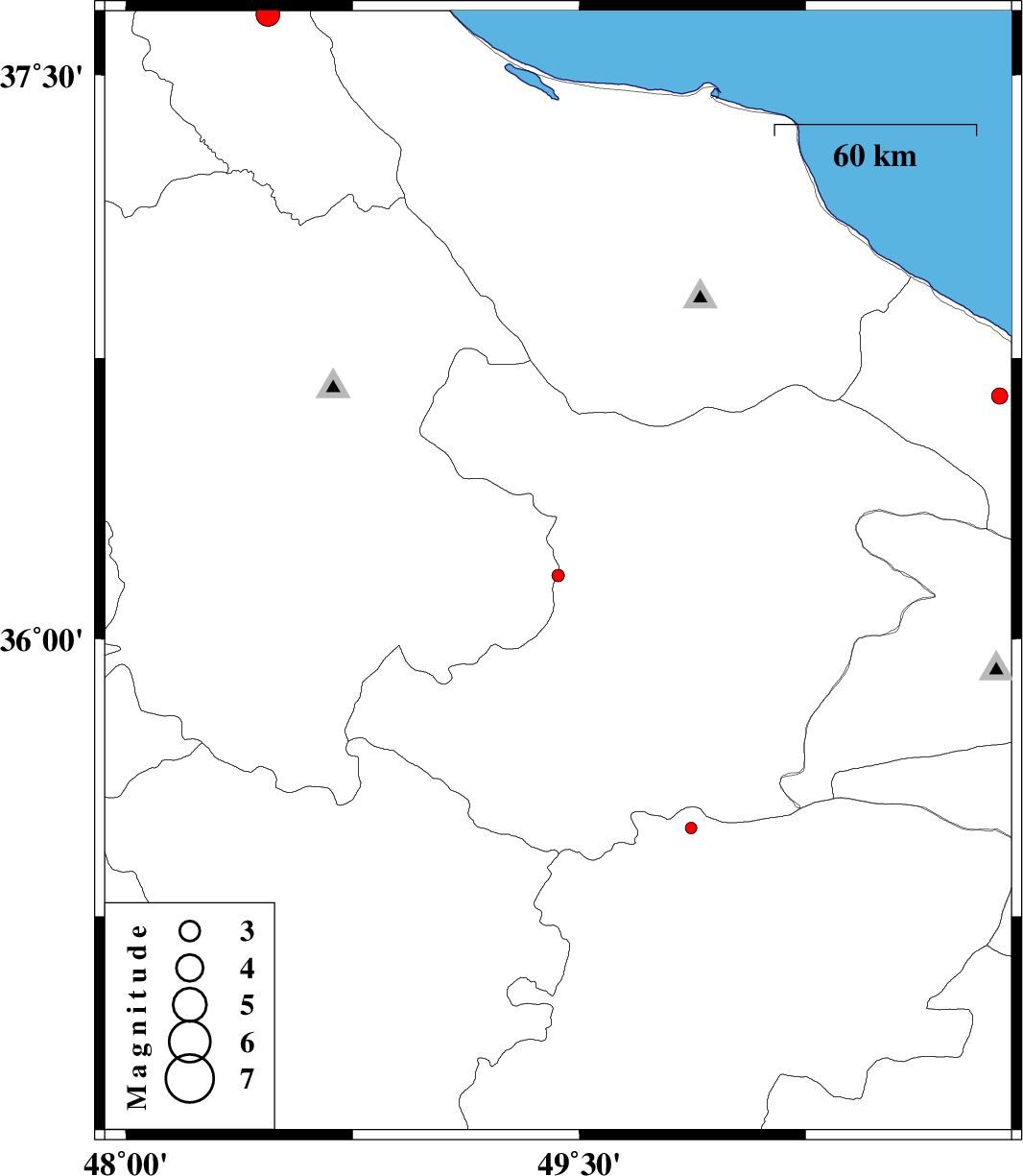 | 2014/09/19 | 06:58:01.7 | 11:28:01.7 | 36.65 | 50.89 | 14 | ML:2.4 | Mazandaran Province, 19 km South of Tonekabon |