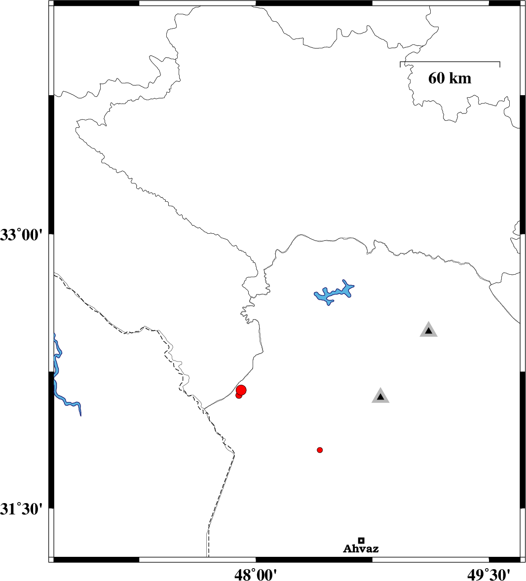 | 2014/10/10 | 19:53:37.4 | 23:23:37.4 | 33.6 | 49.07 | 15 | ML:1.8 | Lorestan Province, 13 km North of Dorud | ||