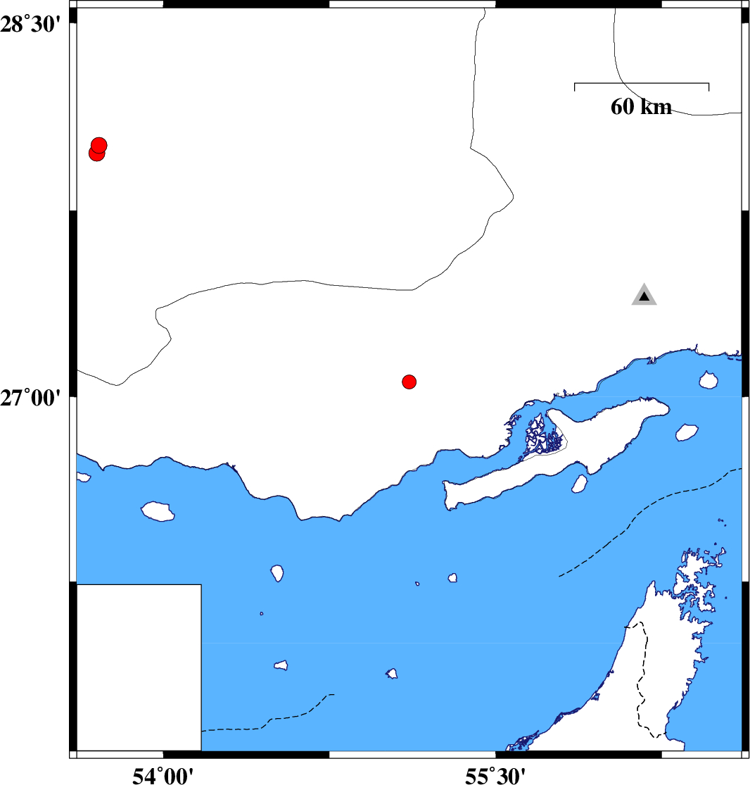 | 2014/10/11 | 11:04:12.9 | 14:34:12.9 | 27.06 | 55.11 | 14 | ML:2.8 | Hormozgan Province, 65 km North-East of Bandar-e lengeh | ||