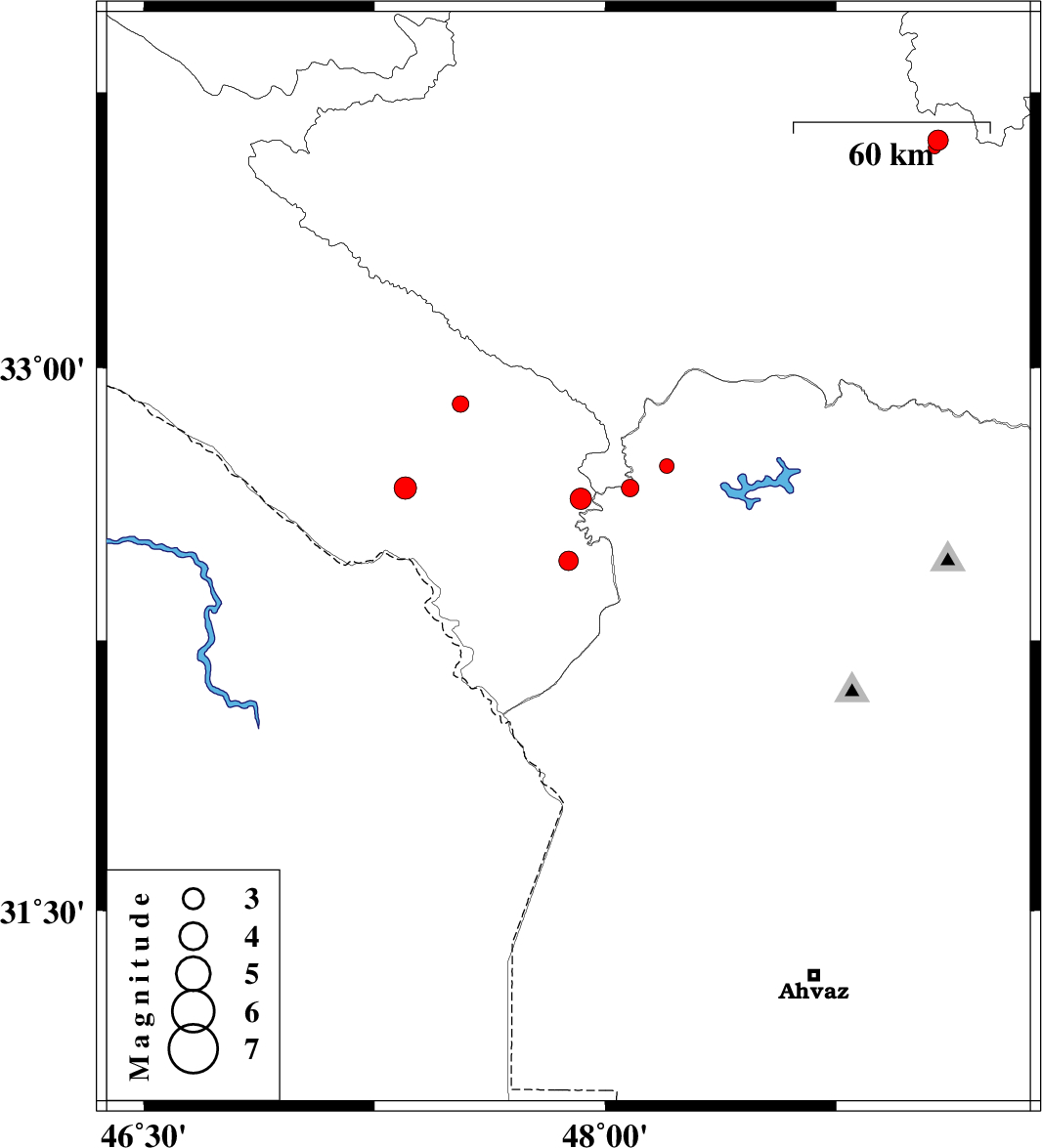 | 2014/10/08 | 17:59:51.8 | 21:29:51.8 | 32.9 | 47.53 | 14 | ML:2.4 | Ilam Province, 7 km Abdanan | ||