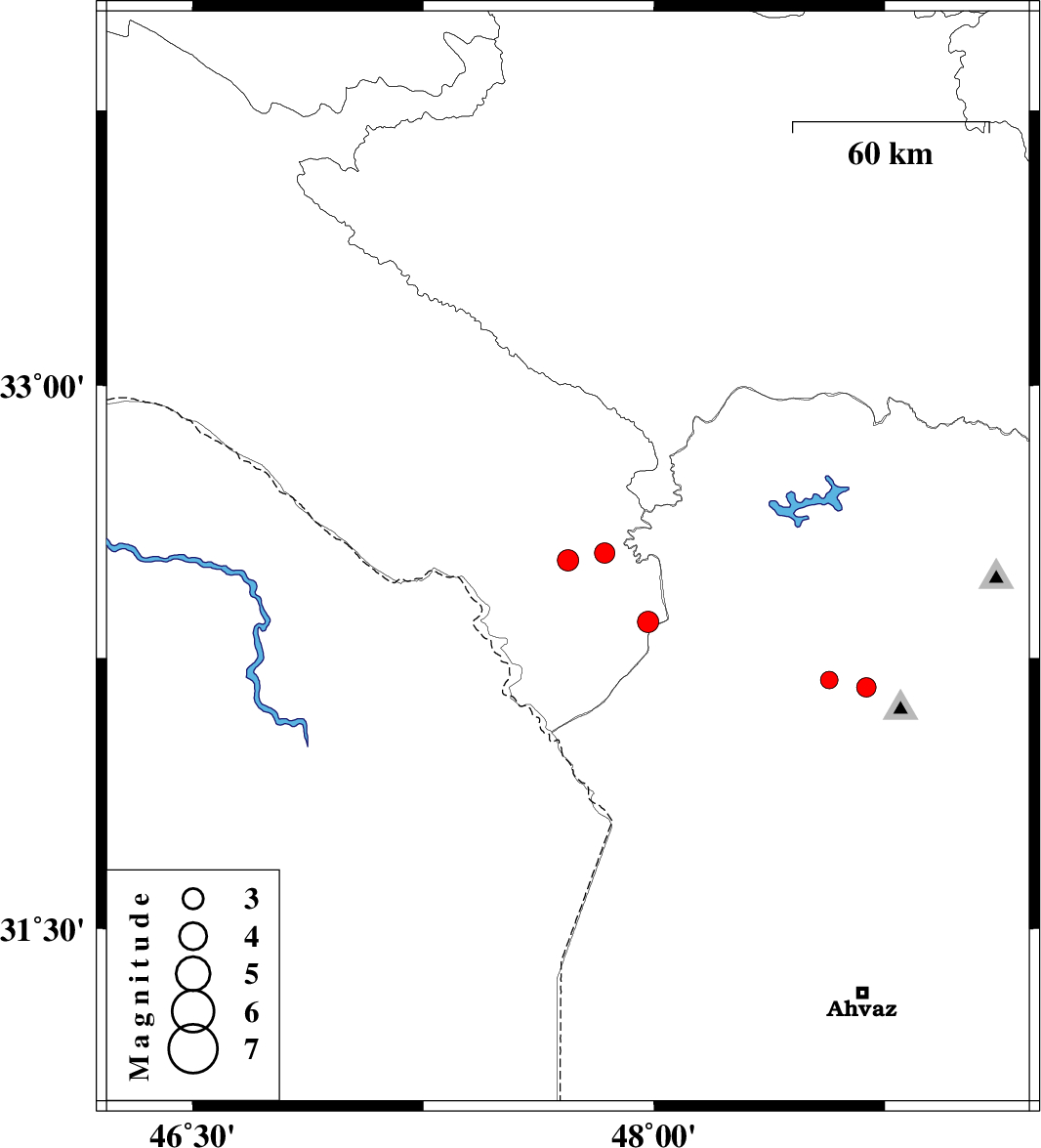 | 2014/10/29 | 17:06:45.5 | 20:36:45.5 | 32.54 | 47.84 | 14 | ML:2.9 | Ilam Province, 48 km West of Andimeshk | ||