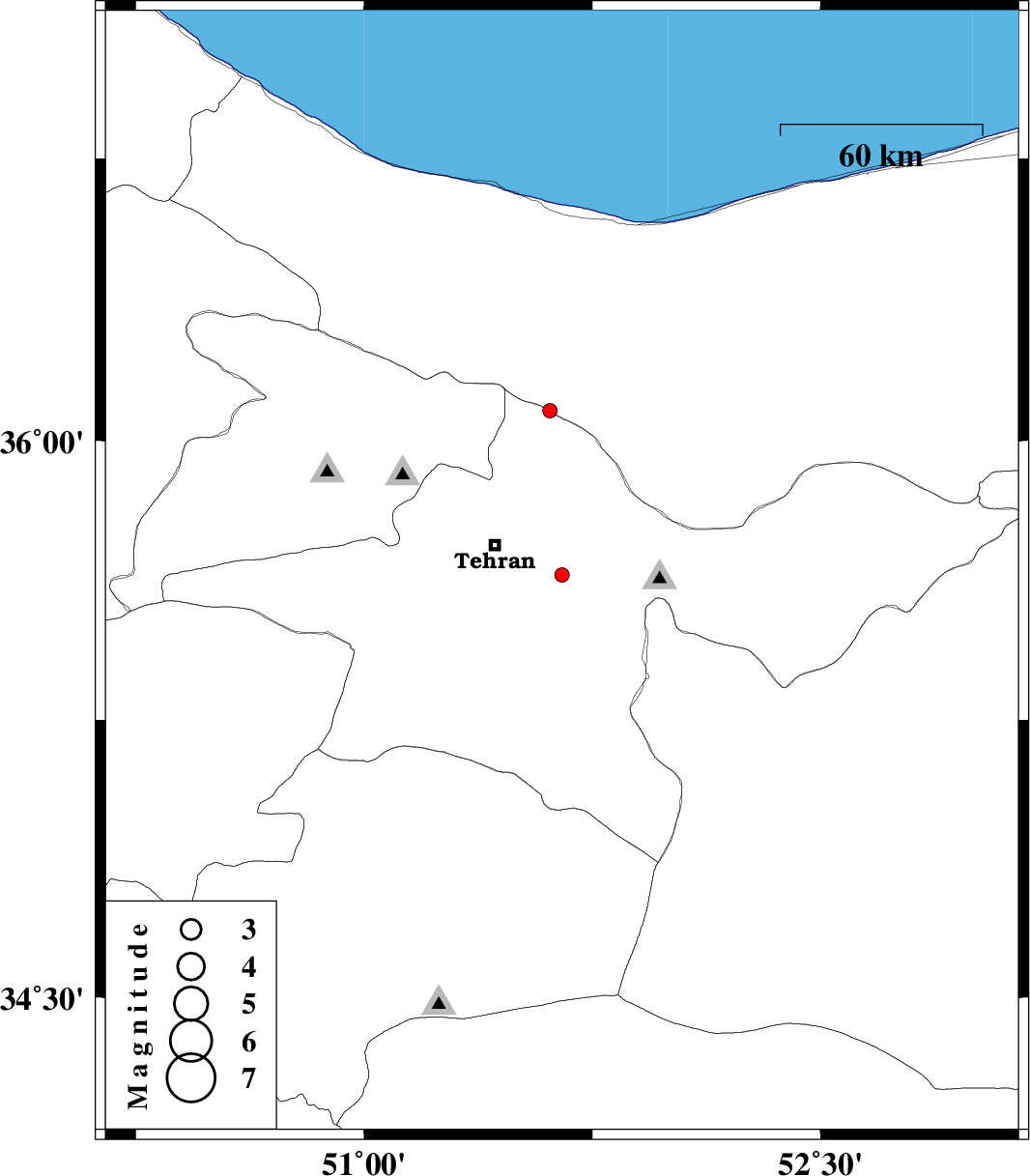 | 2014/11/11 | 03:20:05.0 | 06:50:05.0 | 36.08 | 51.61 | 6 | ML:2.1 | Tehran Province, 34 km North-East of Tajrish |