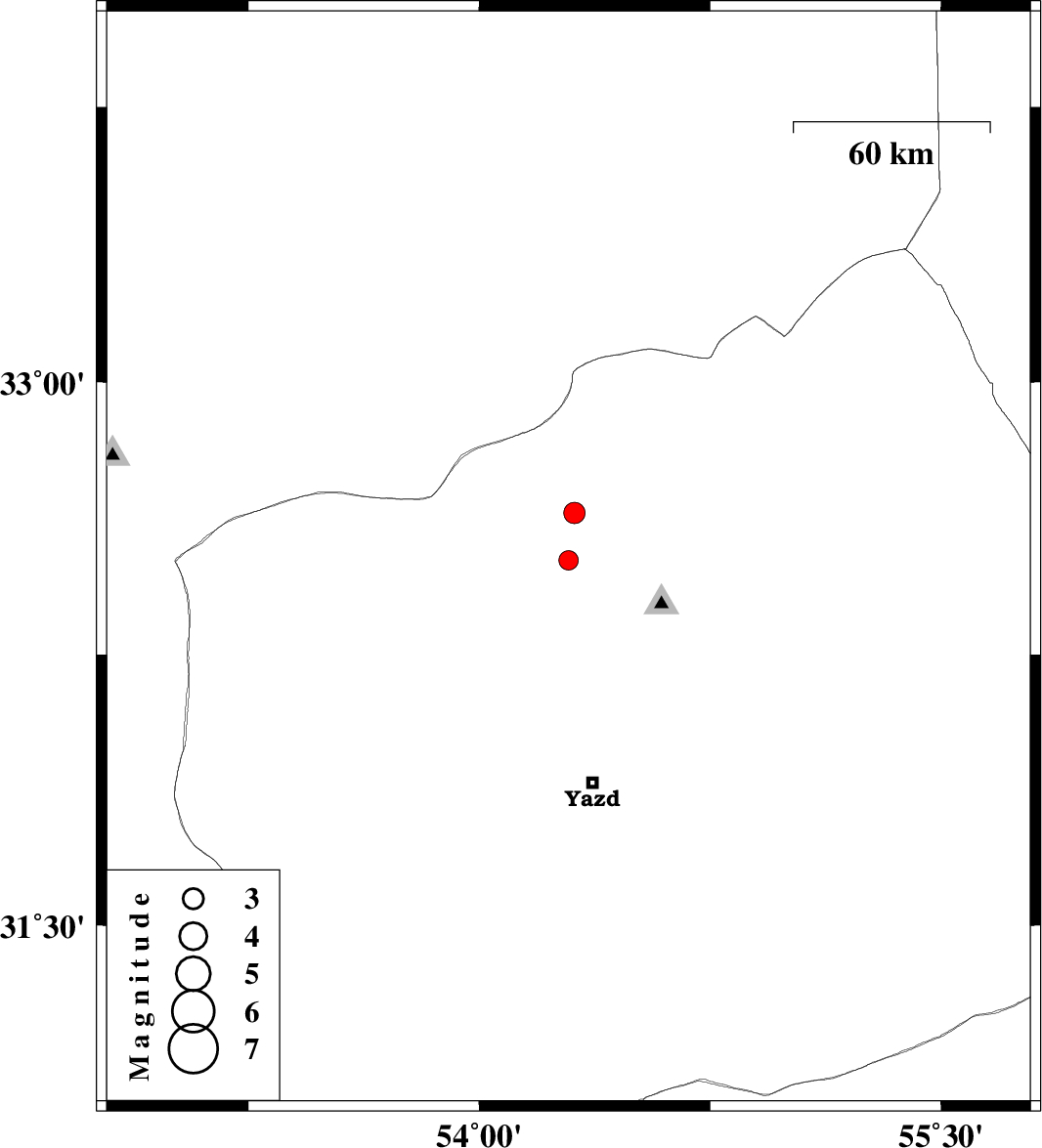 | 2014/11/16 | 13:54:00.5 | 17:24:00.5 | 32.51 | 54.29 | 14 | ML:2.8 | Yazd Province, 33 km North-East of Ardakan | ||