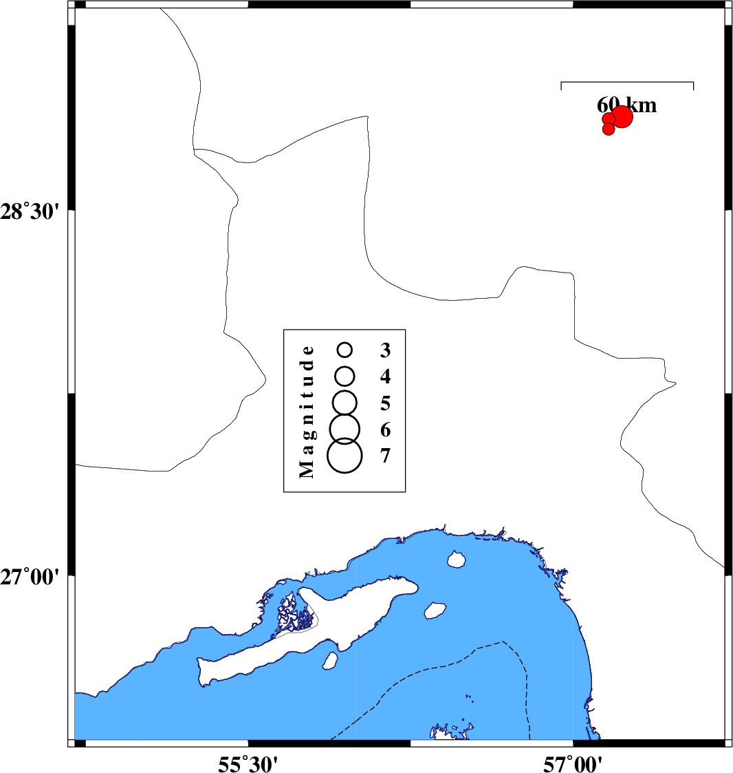 | 2014/11/11 | 10:05:43.1 | 13:35:43.1 | 27.87 | 56.26 | 18 | ML:4.6 | Hormozgan Province, 76 km North of Bandar-e abbas |