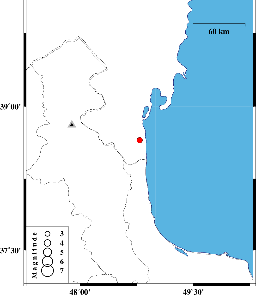 2014/11/29 | 00:39:23.7 | 04:09:23.7 | 38.65 | 48.79 | 46 | ML:3.4 | Azerbaijan, 26 km North of Astara | ||