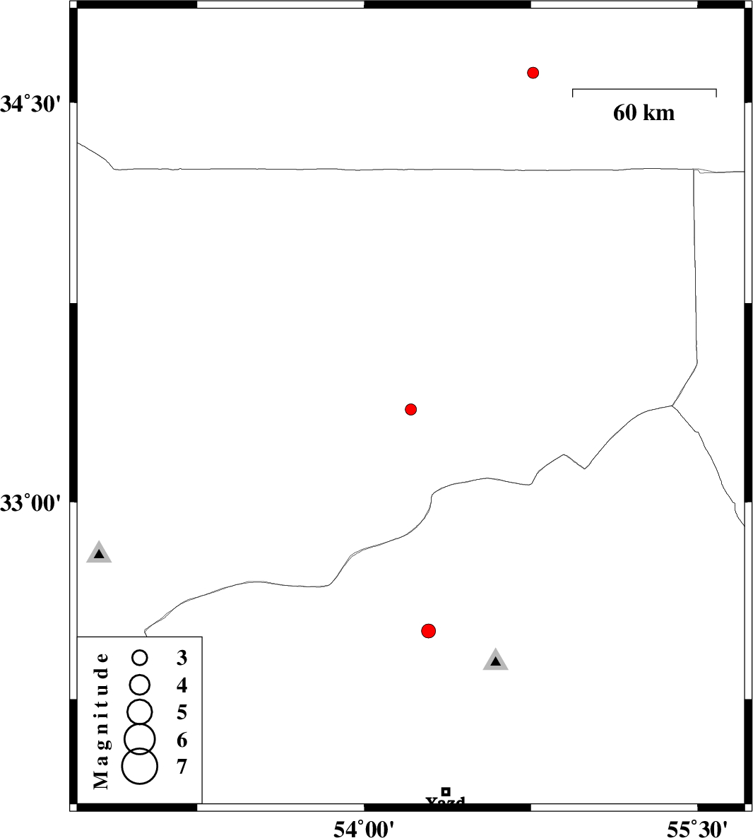2014/11/16 | 13:54:00.5 | 17:24:00.5 | 32.51 | 54.29 | 14 | ML:2.8 | Yazd Province, 33 km North-East of Ardakan |