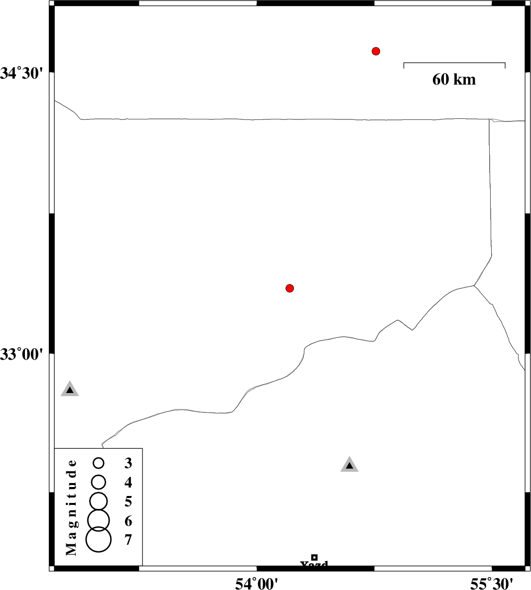 | 2014/11/28 | 02:19:29.7 | 05:49:29.7 | 33.35 | 54.21 | 43 | ML:2.2 | Esfahan Province, 117 km North-East of Ardakan | ||