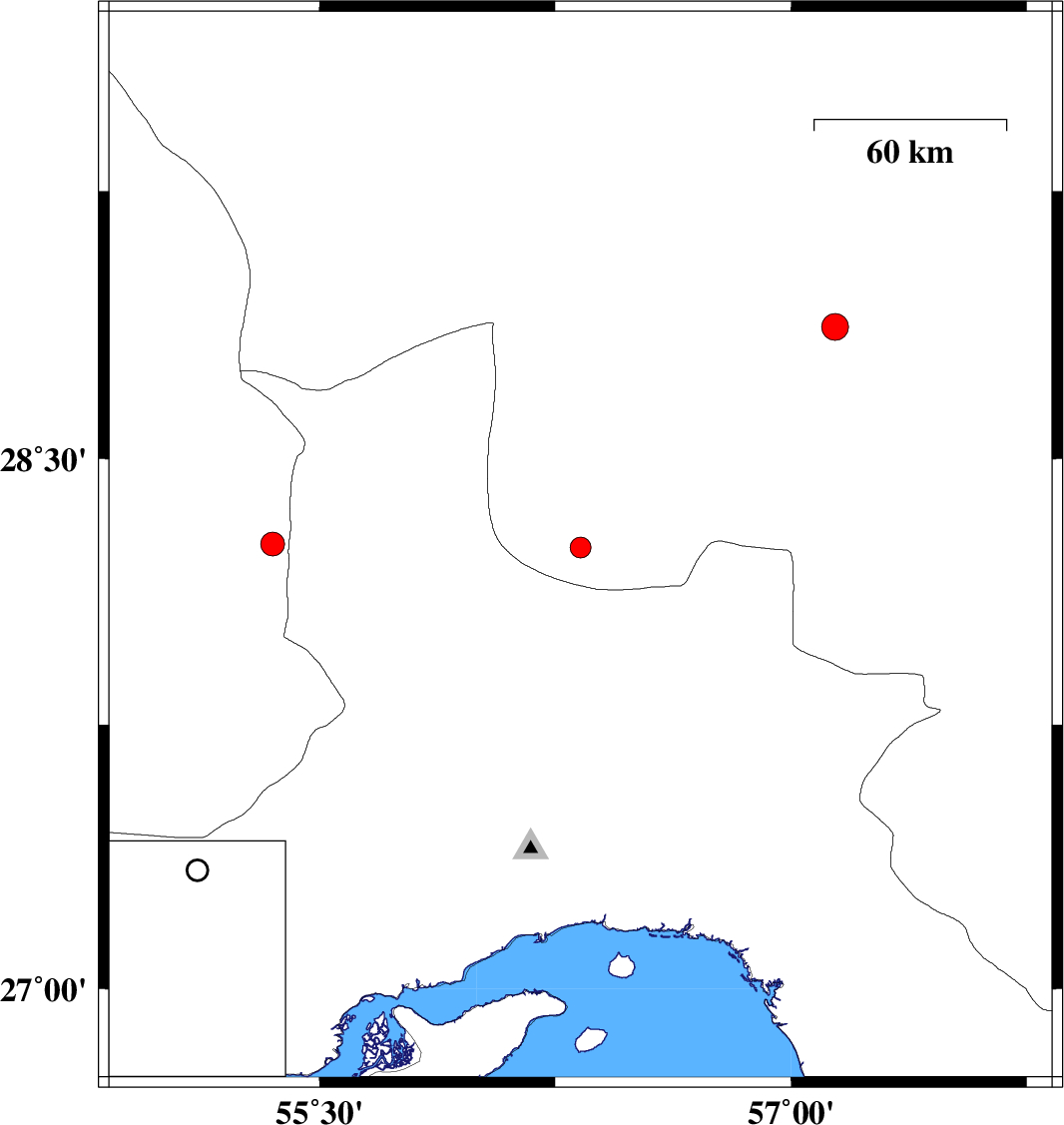 | 2014/11/29 | 17:40:01.2 | 21:10:01.2 | 28.26 | 55.35 | 17 | ML:3.4 | Fars Province, 55 km West of Hajiabad | ||