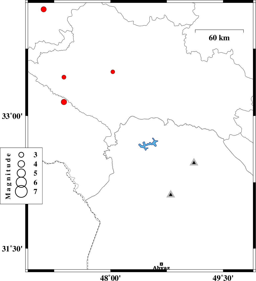 | 2014/12/09 | 00:10:06.8 | 03:40:06.8 | 32.76 | 48.4 | 14 | ML:2.4 | Khoozestan Province, 34 km North of Andimeshk | ||