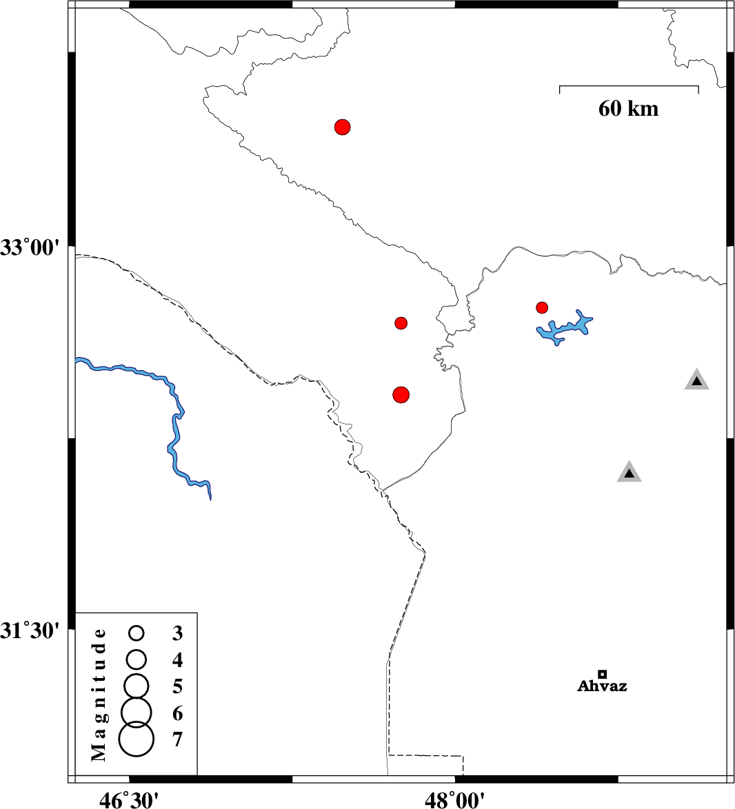 | 2014/12/09 | 00:10:06.8 | 03:40:06.8 | 32.76 | 48.4 | 14 | ML:2.4 | Khoozestan Province, 34 km North of Andimeshk | ||
