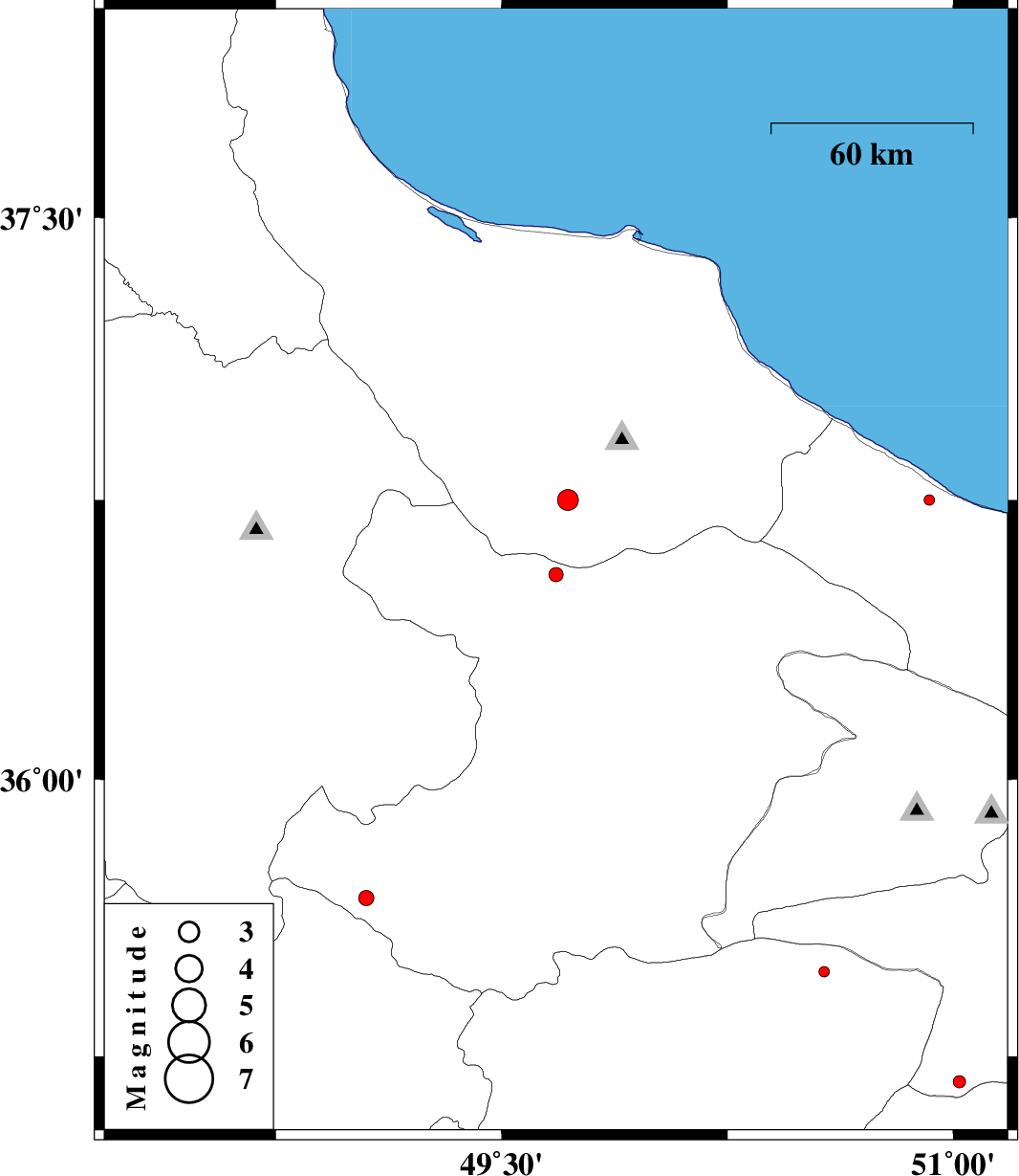 | 2014/12/16 | 15:49:11.3 | 19:19:11.3 | 36.75 | 49.72 | 15 | ML:3.1 | Gilan Province, 27 km East of Rudbar | ||