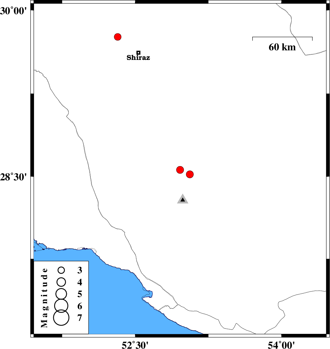 | 2015/01/21 | 13:14:52.7 | 16:44:52.7 | 29.76 | 52.32 | 6 | ML:3.3 | Fars Province, 25 km North-West of Shiraz |