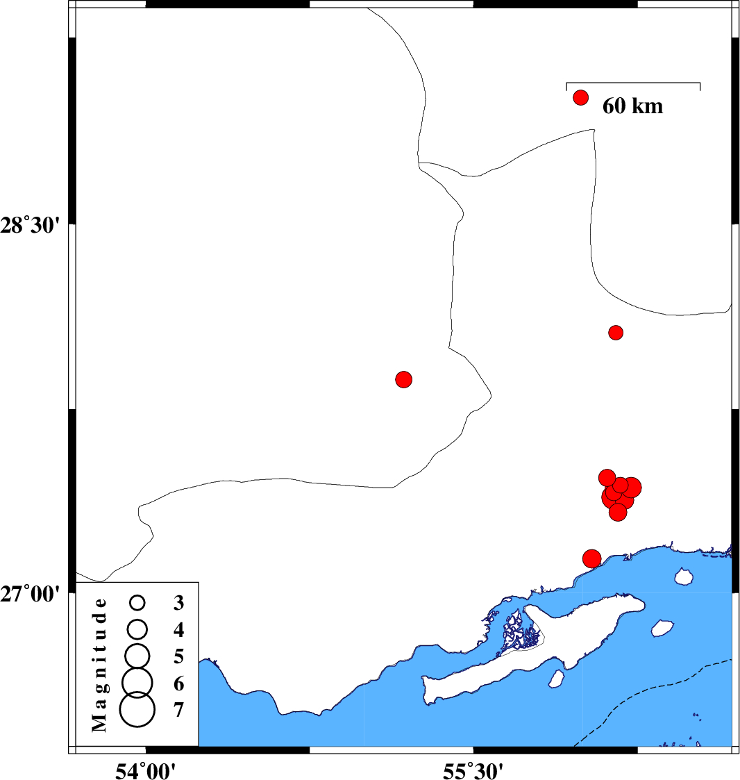 2015/02/06 | 02:19:37.6 | 05:49:37.6 | 27.87 | 55.18 | 37 | ML:3.4 | Fars Province, 86 km North-East of Lar | ||