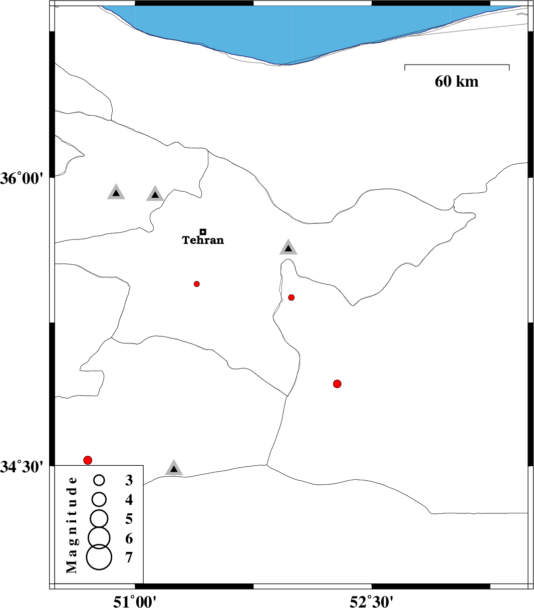 | 2015/01/30 | 13:35:21.7 | 17:05:21.7 | 35.45 | 51.39 | 18 | ML:1.5 | Tehran Province, 18 km South of Rey |