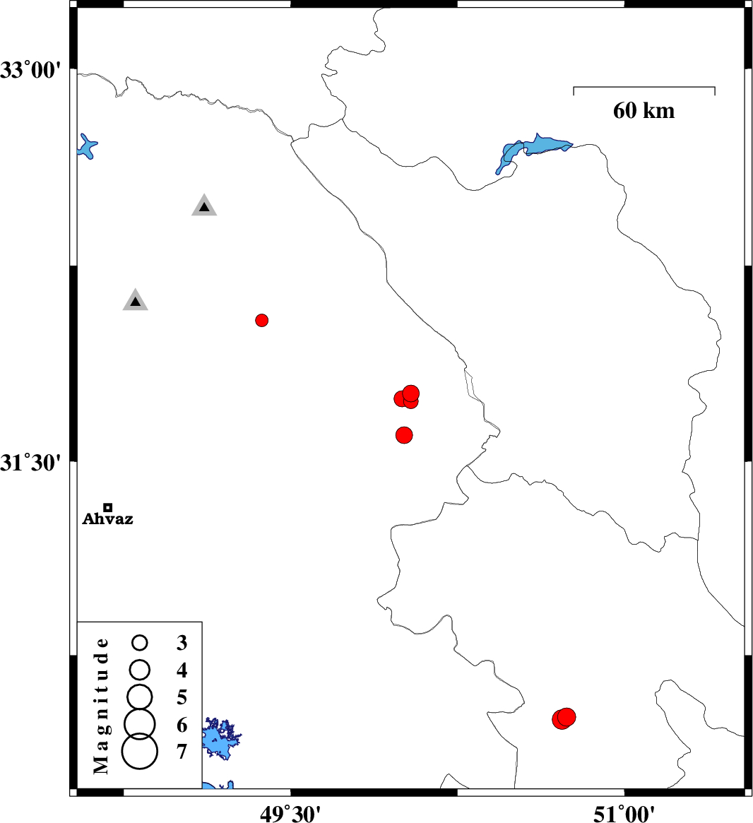 | 2015/02/08 | 19:50:05.7 | 23:20:05.7 | 31.6 | 50.01 | 14 | ML:3.4 | Khoozestan Province, 14 km East of Bagh Malek | ||