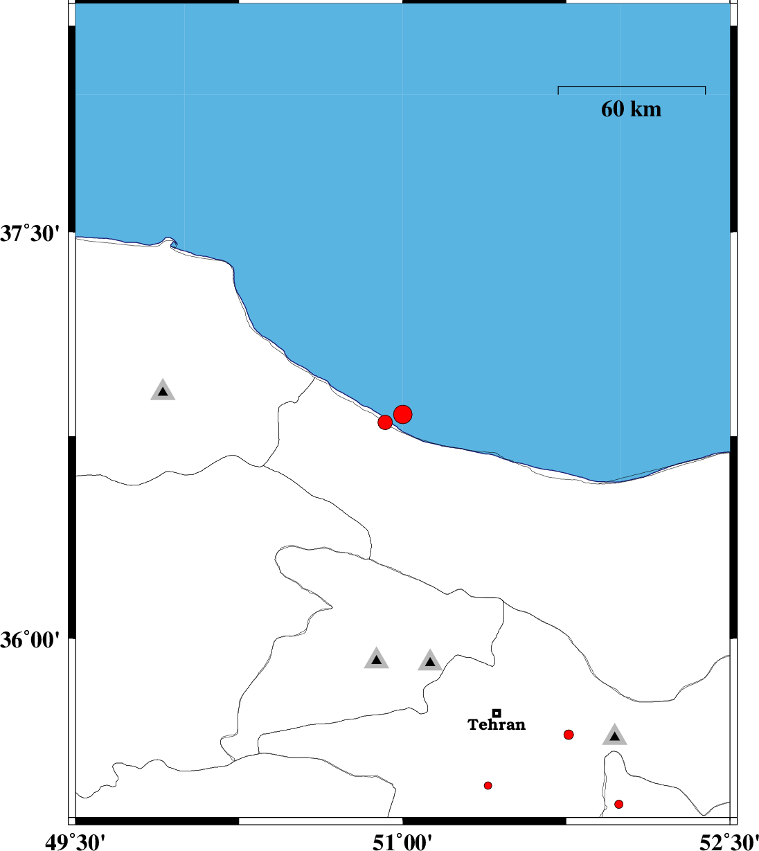 | 2015/02/22 | 08:18:22.7 | 11:48:22.7 | 36.83 | 51 | 18 | ML:3.8 | Caspian Sea, 10 km East of Tonekabon | ||