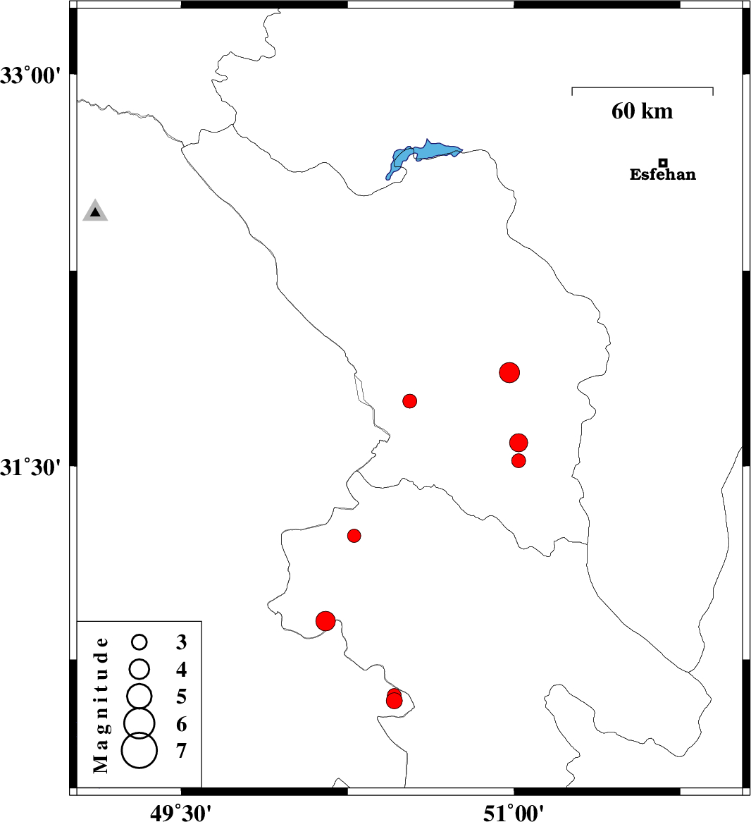 | 2015/02/25 | 08:34:49.1 | 12:04:49.1 | 31.86 | 50.98 | 18 | ML:4.1 | Chaharmahal Bakhtiari Province, 32 km South-West of Borujen | ||