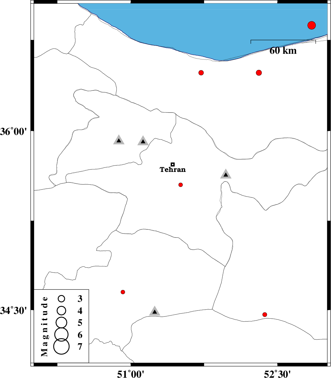 | 2015/03/02 | 22:38:37.3 | 02:08:37.3 | 36.87 | 52.85 | 14 | ML:3.6 | Caspian Sea, 26 km North of Joybar | ||