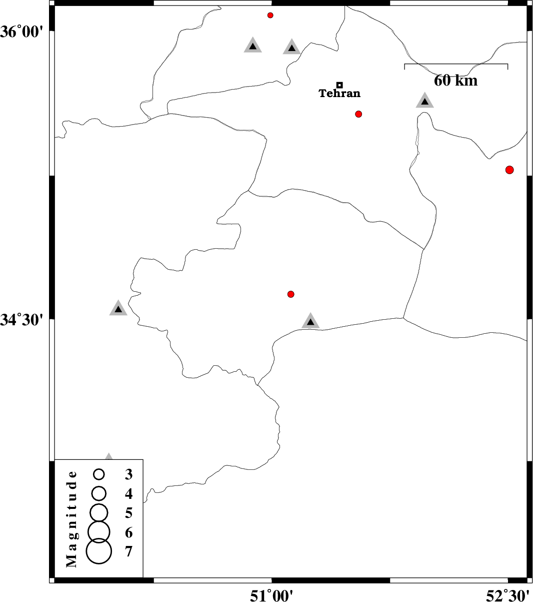 | 2015/03/12 | 08:49:09.0 | 12:19:09.0 | 35.57 | 51.55 | 14 | ML:1.9 | Tehran Province, 11 km East of Rey |
