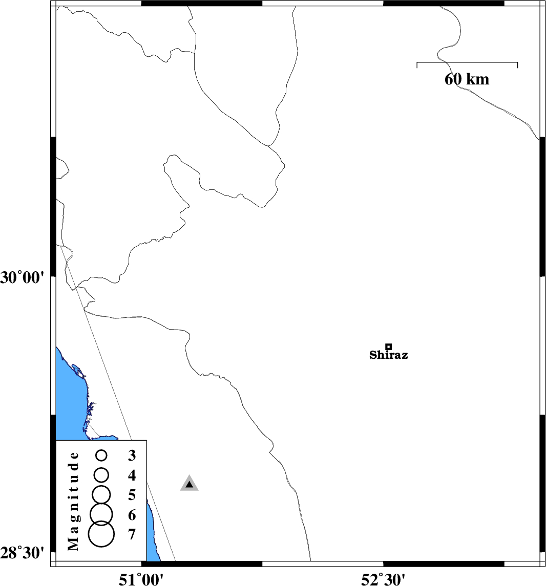 | 2015/03/30 | 20:21:29.4 | 00:51:29.4 | 29.95 | 51.97 | 15 | ML:2.9 | Fars Province, 34 km South of Ardakan |