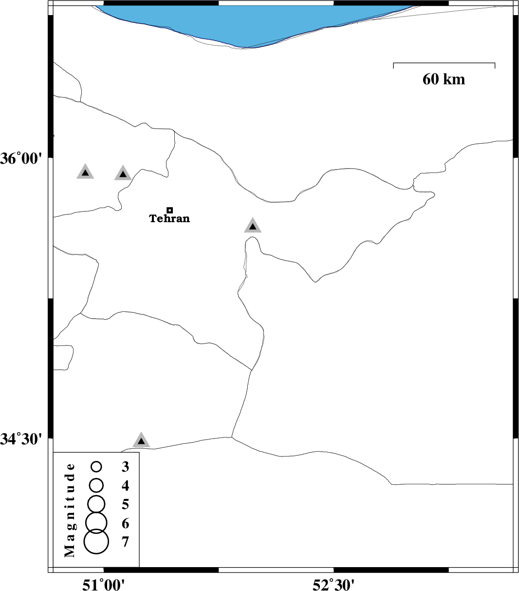 | 2015/04/01 | 03:18:50.3 | 07:48:50.3 | 35.3 | 52.17 | 14 | ML:2.3 | Semnan Province, 18 km West of Garmsar |