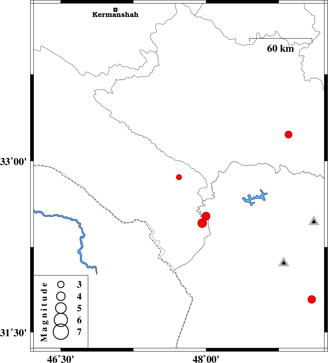 | 2015/04/01 | 17:52:51.2 | 22:22:51.2 | 32.86 | 47.72 | 14 | ML:2.5 | Ilam Province, 33 km South of Pol-e dokhtar | ||