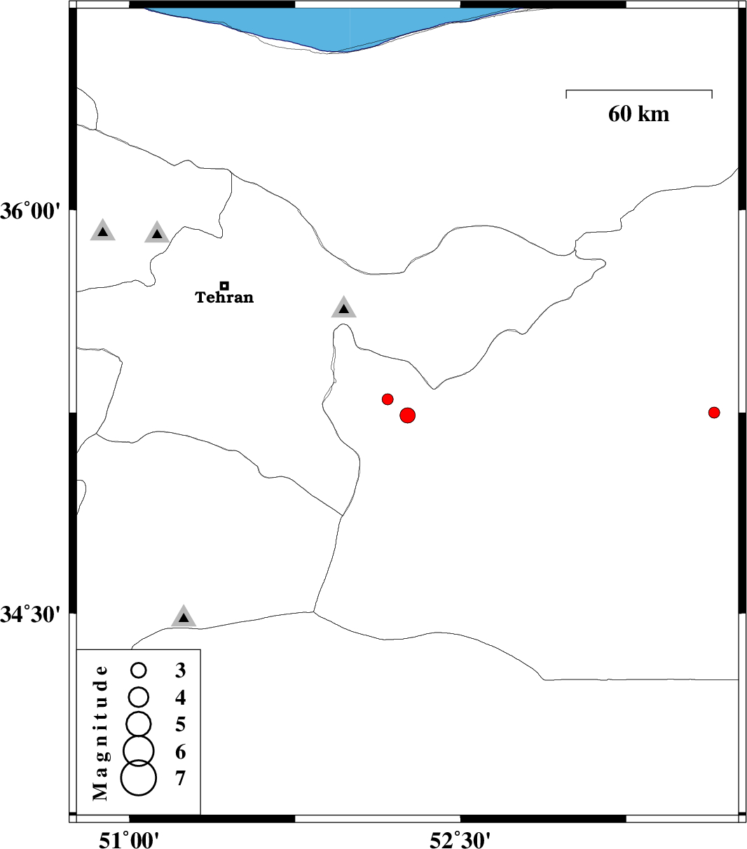 | 2015/04/01 | 03:18:50.3 | 07:48:50.3 | 35.3 | 52.17 | 14 | ML:2.3 | Semnan Province, 18 km West of Garmsar |