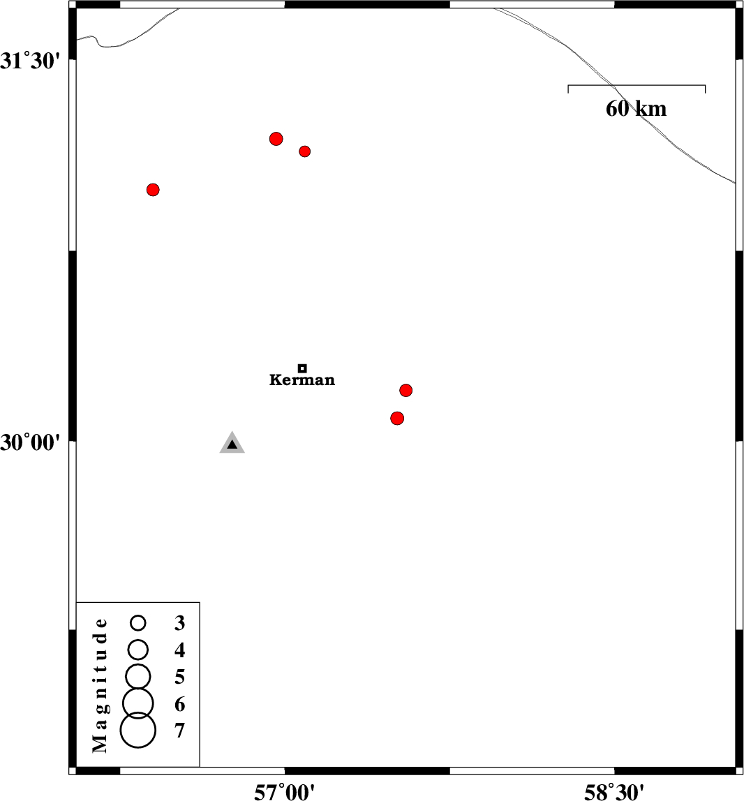 2015/04/12 06:58:30.9 11:28:30.9 30.257.5514 ML:2.5 Kerman Province, 47 km East of Kerman