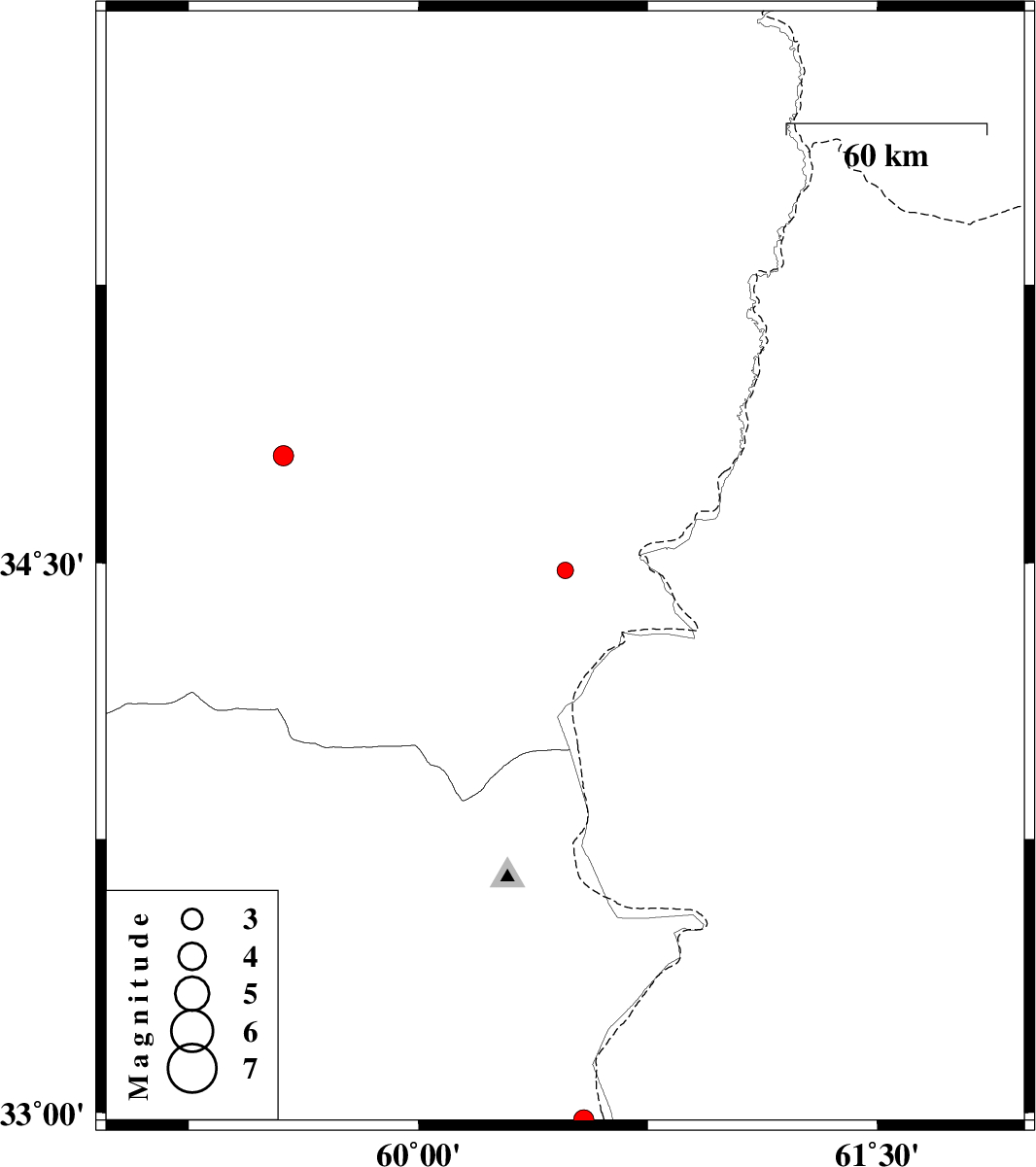 | 2015/04/14 | 16:55:54.4 | 21:25:54.4 | 32.98 | 60.54 | 26 | ML:2.9 | Khorasan(south) Province, 80 km North-East of Sarbisheh | ||