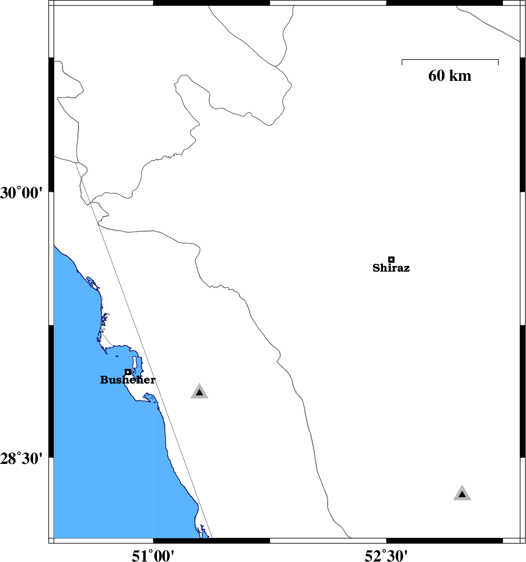 | 2015/04/18 | 23:04:55.3 | 03:34:55.3 | 29.11 | 51.09 | 14 | ML:3.3 | Bushehr Province, 20 km South-West of Borazjan |