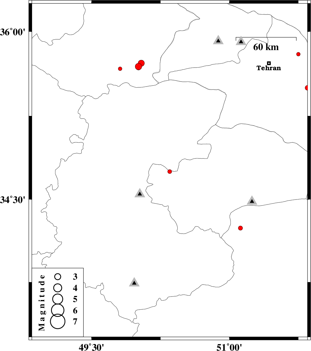 | 2015/04/21 | 08:38:19.3 | 13:08:19.3 | 35.8 | 51.75 | 14 | ML:1.9 | Tehran Province, 27 km East of Tajrish | ||
