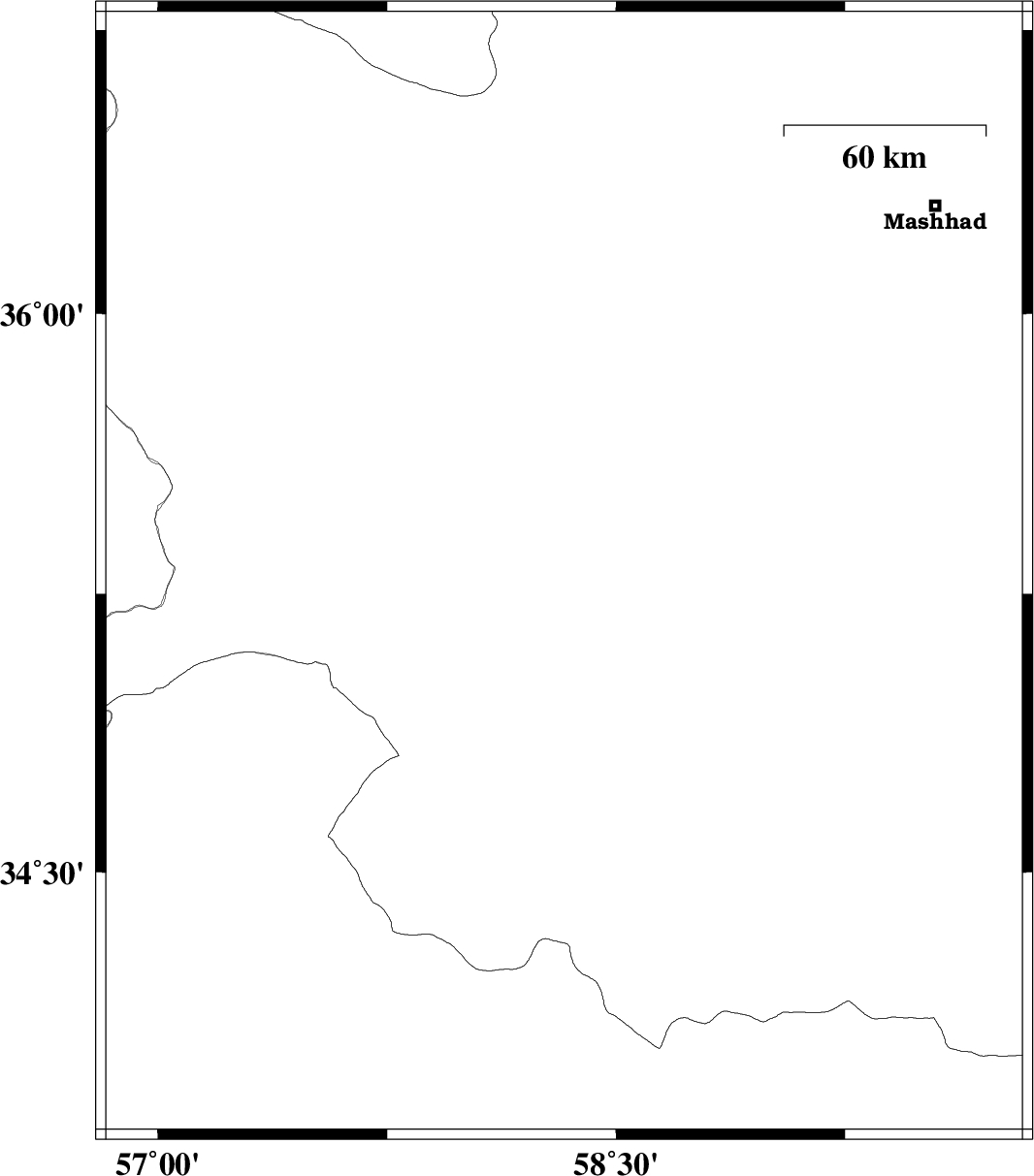 2015/04/09 | 02:22:34.8 | 06:52:34.8 | 35.08 | 56.95 | 14 | ML:3.2 | Khorasan(center) Province, 93 km South-West of Bardeskan | ||