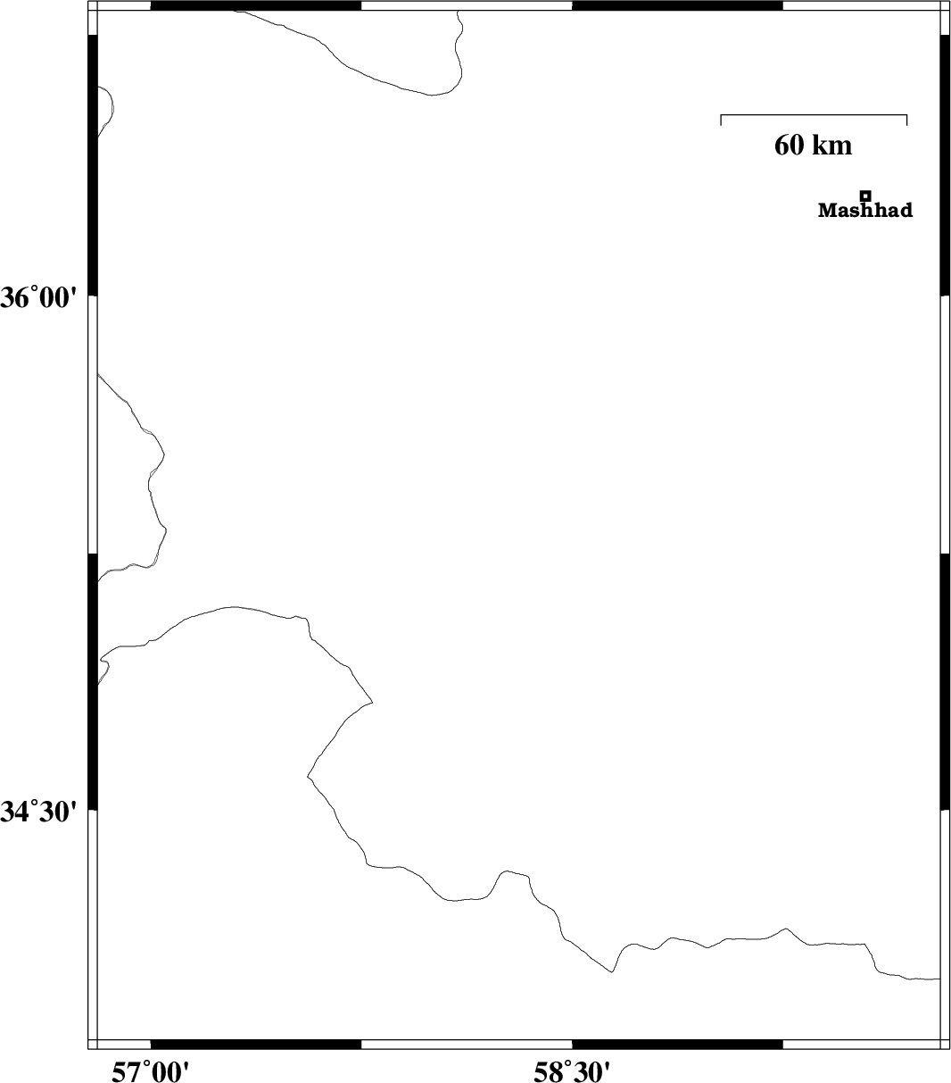 2015/04/09 | 02:22:34.8 | 06:52:34.8 | 35.08 | 56.95 | 14 | ML:3.2 | Khorasan(center) Province, 93 km South-West of Bardeskan |