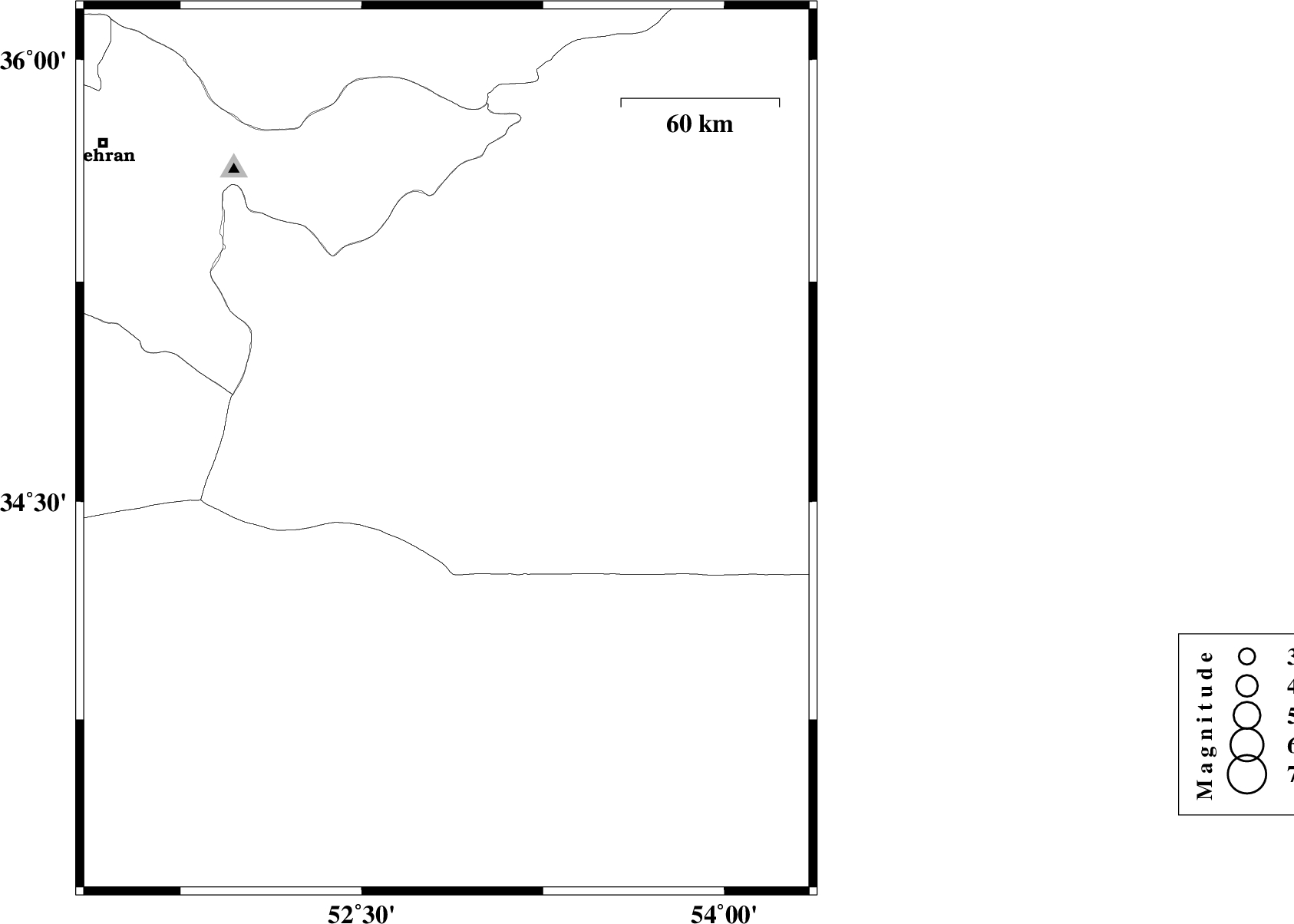 | 2015/05/15 | 14:39:16.8 | 19:09:16.8 | 34.67 | 52.85 | 37 | ML:2.6 | Semnan Province, 76 km South-East of Garmsar | ||