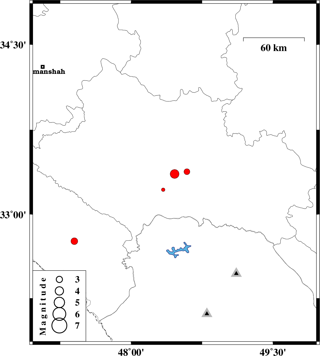| 2015/05/14 | 00:56:53.1 | 05:26:53.1 | 32.76 | 47.4 | 17 | ML:3.2 | Ilam Province, 15 km East of Dehloran |
