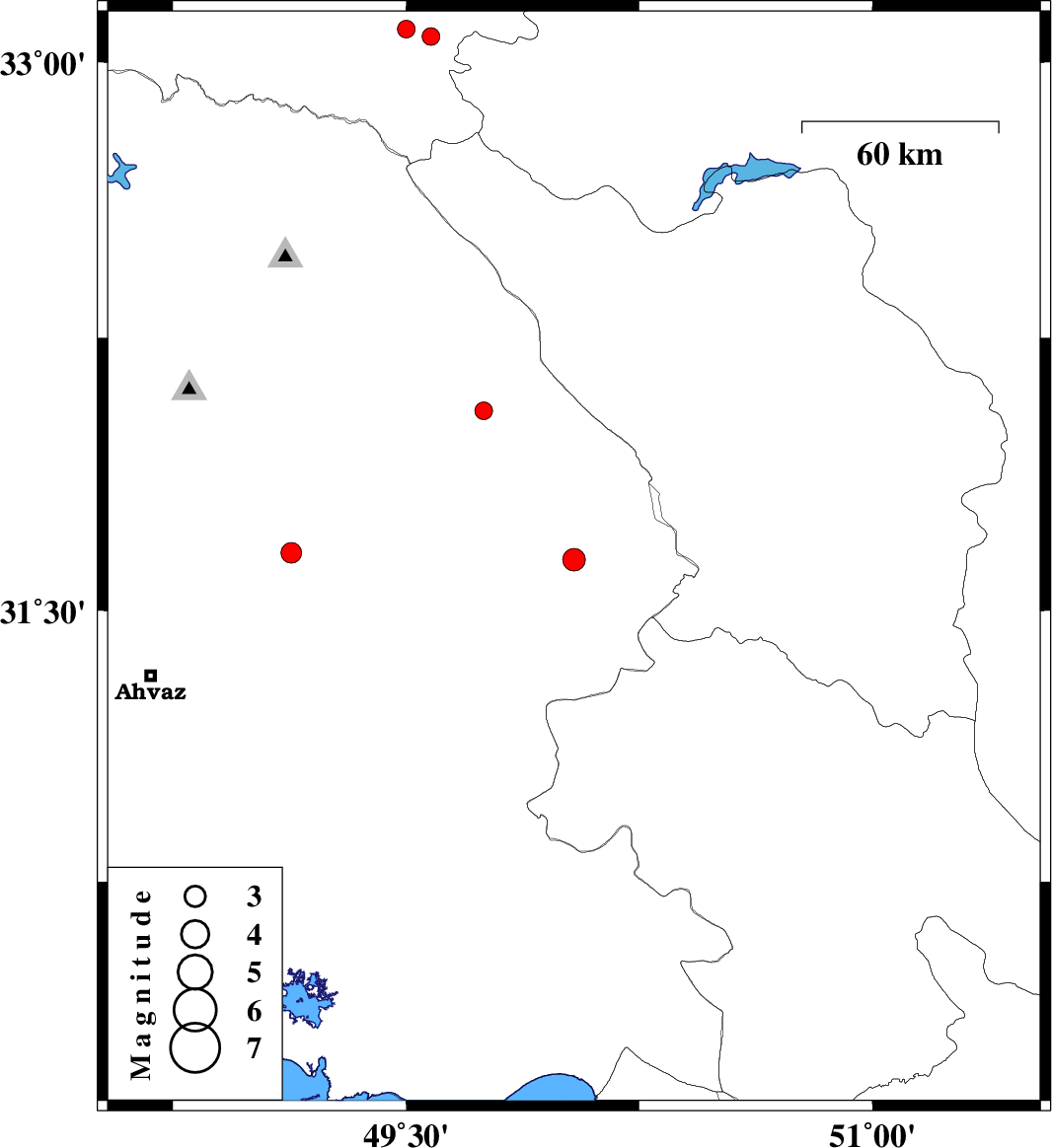 | 2015/06/17 | 20:32:23.2 | 01:02:23.2 | 31.64 | 50.04 | 18 | ML:3.3 | Khoozestan Province, 19 km North-East of Bagh Malek | ||